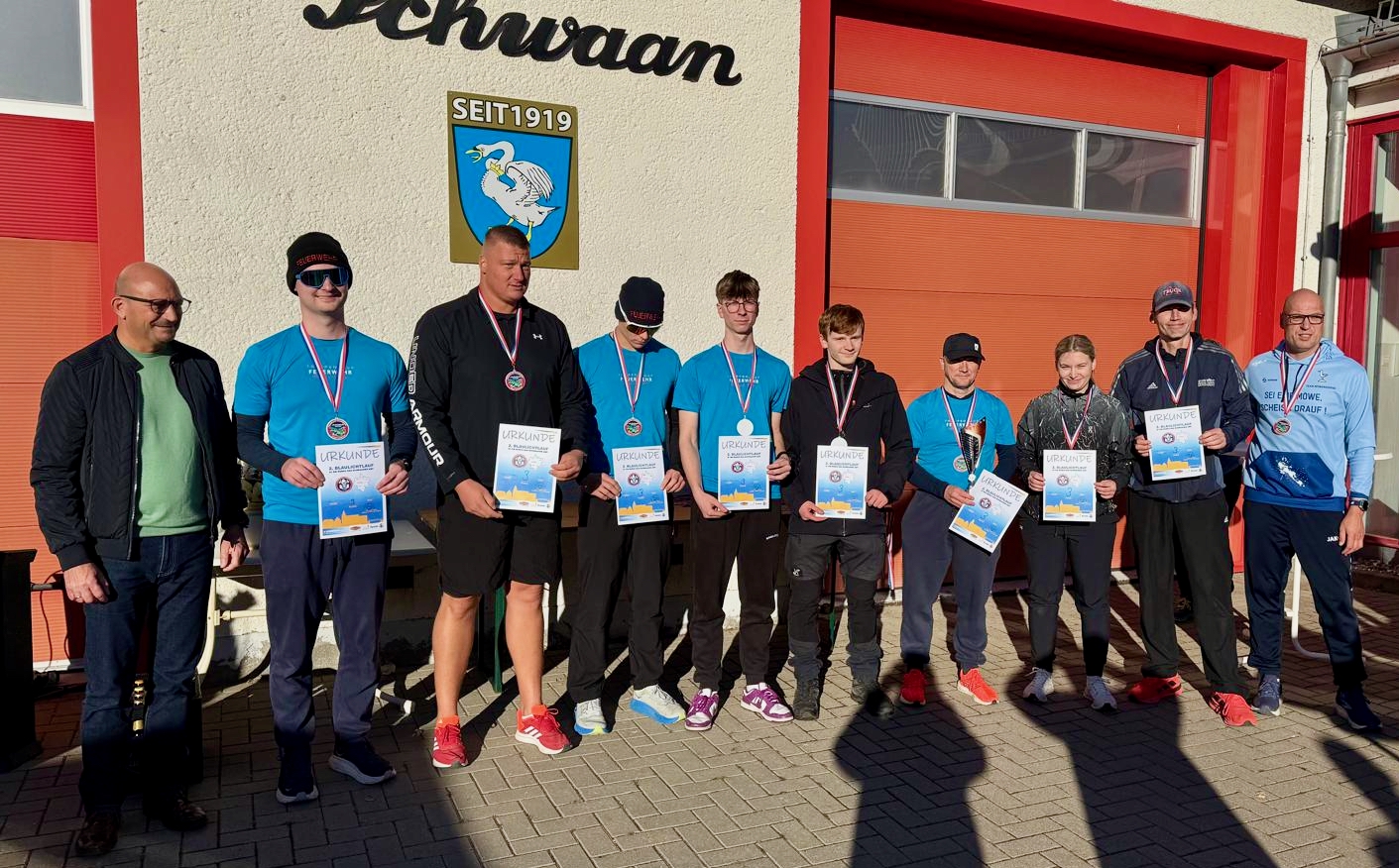 Warens Feuerwehrleute können nicht nur schnell löschen, sondern auch fix laufen: Ein Team der Wehr ist am Wochenende beim zweiten Blaulichtlauf durch das Schwaaner Amt an den Start gegangen. Die acht Kameradinnen und Kameraden legten 51 Kilometer als Staffel zurück und belegten mit einer Zeit von 4 Stunden, 15 Minuten und 47 Sekunden eine tollen 3. Platz. „Damit haben wir nicht gerechnet“, sagt Teamleiter und Wehrführer Reimond Kamrath. „Ich bin sehr stolz auf das Team.“ Ein kleines Präsent gab es dann auch noch für die weiteste Anreise.