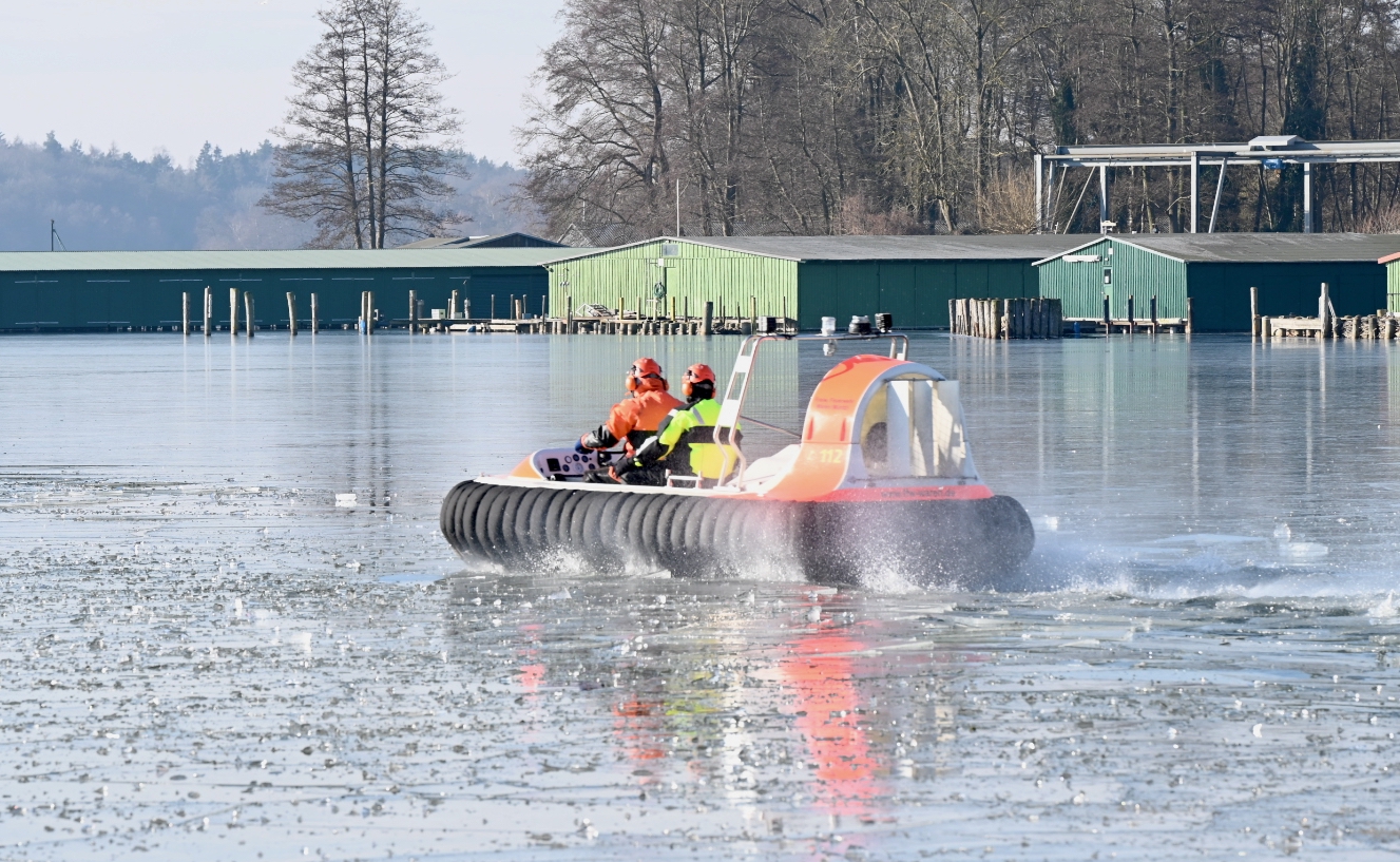 Warens Feuerwehrleute haben die noch winterlichen Verhältnisse auf der Müritz bei ihrer heutigen Ausbildung genutzt, um die Eisrettung zu trainieren. Dabei kamen am Volksbad alle ihnen zur Verfügung stehenden Hilfsmittel zum Einsatz – von der klassischen Leiter über das Schlauchboot bis hin zum Luftkissenboot (Hovercraft). Wie sich in den vergangenen Tagen in anderen Region – auch Mecklenburg-Vorpommerns – gezeigt hat, kommt es trotz vieler Warnungen immer wieder zu kritischen Situationen, weil Wagemutige sich auf den nur dünn zugefroren Seen tummeln.