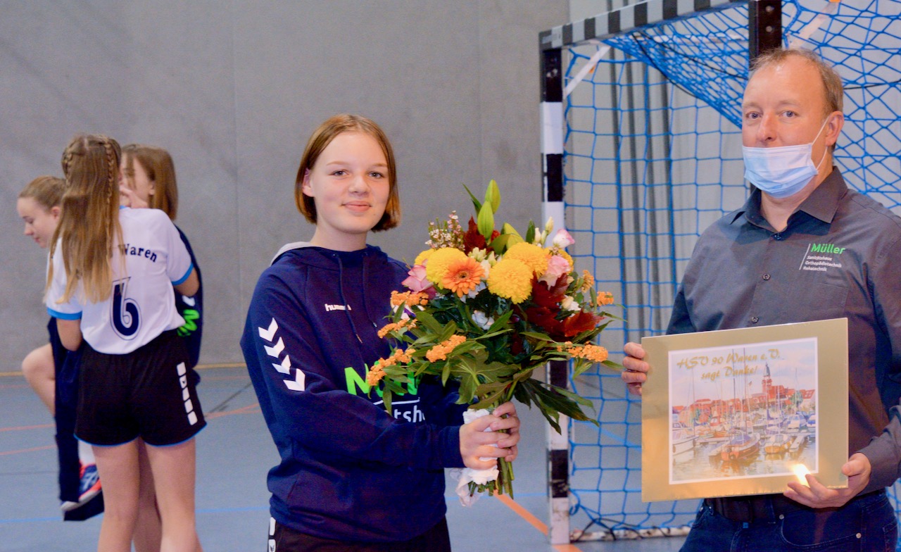 Vor wenigen Tagen konnten die neuen, vom Sanitätshaus Müller gesponserten Kapuzenpullover an die weibliche B Jugend des HSV 90 Waren durch den Geschäftsführer Mike Marohn übergeben werden. Darauf mussten sowohl die Mädchen als auch der Sponsor länger warten, da die Pandemie einem größeren Rahmen immer wieder einen Strich durch die Rechnung machte. Doch endlich war es soweit und für das jetzige Wetter genau zur rechten Zeit.