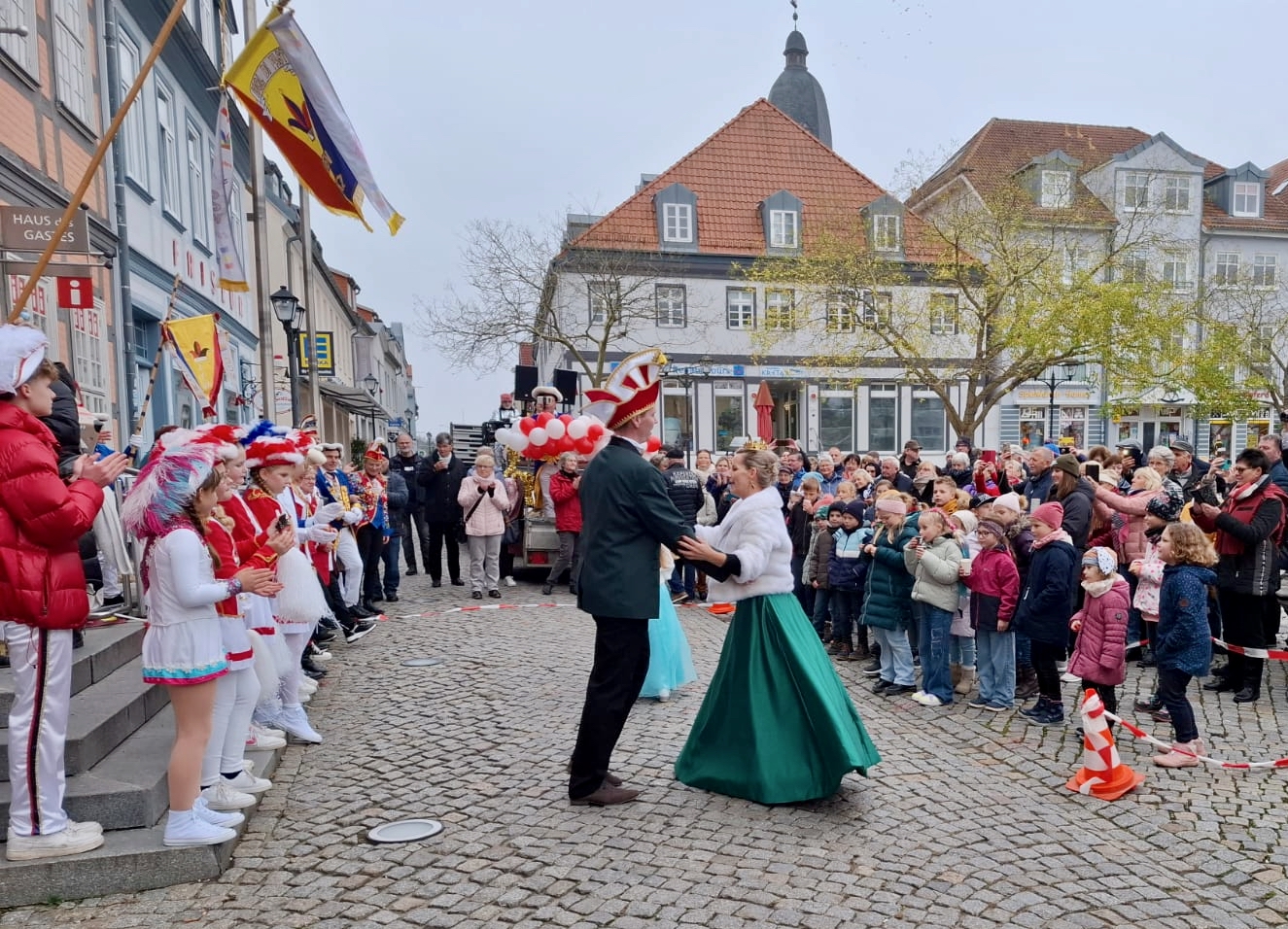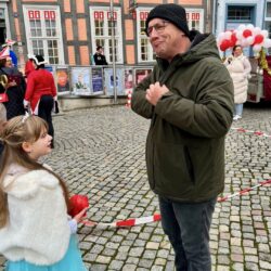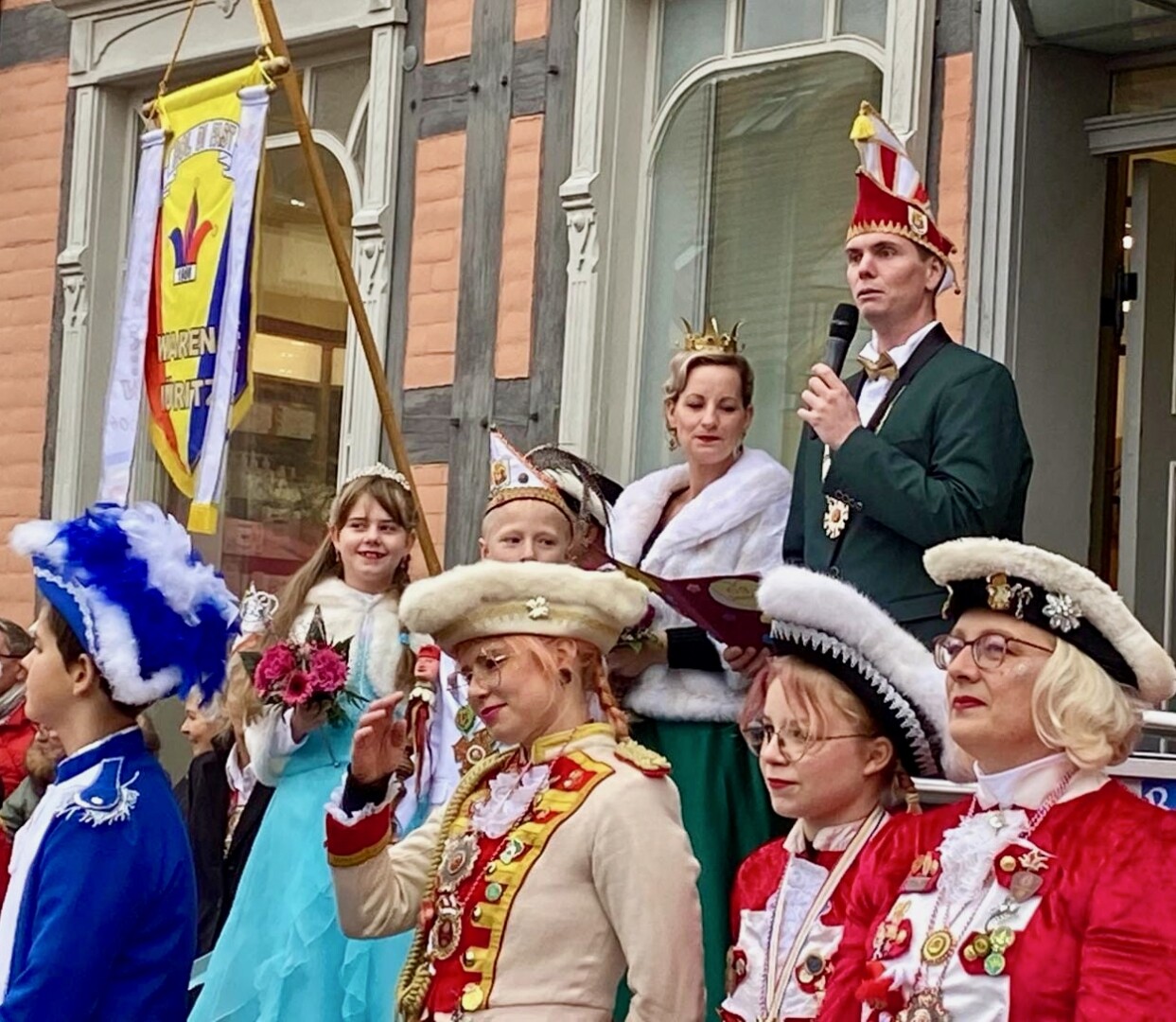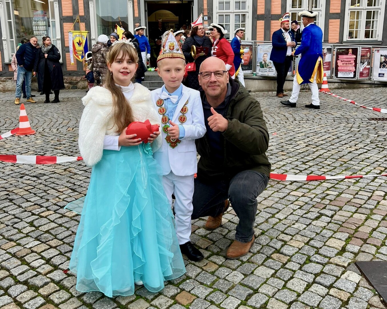 Das kleine Prinzenpaar machte sich übrigens gleich auf die Socken, um Geld für den Fasching zu sammeln. Da kam auch der Präsident der Stadtvertretung, Toralf Schnur, nicht drumherum, musste seine Brieftasche zücken und ließ sich nicht lumpen.