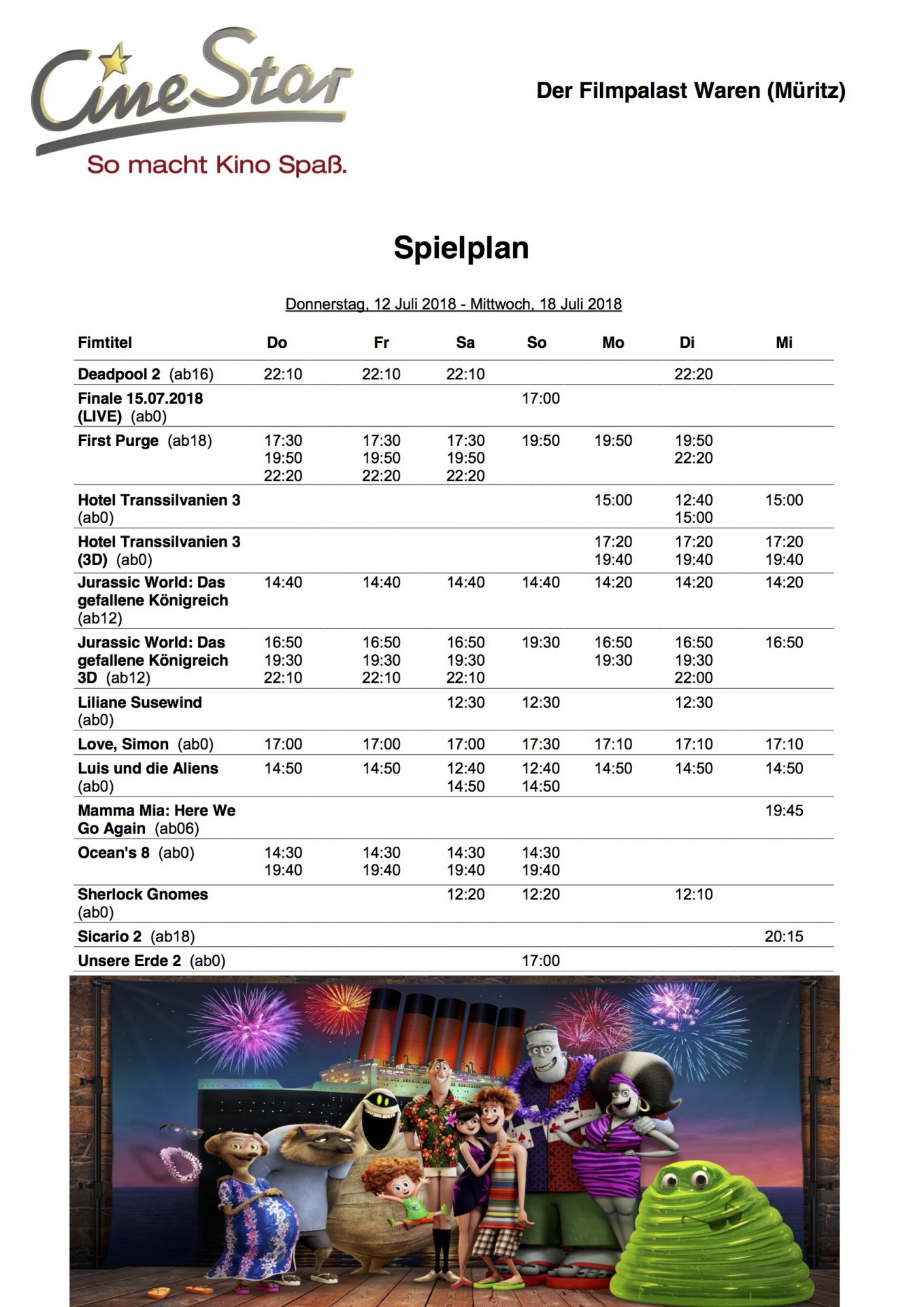 Hier das ab heute gültige Kinoprogramm des CineStar in Waren. In den nächsten Tagen gibt es folgende Sondervorstellungen: