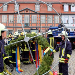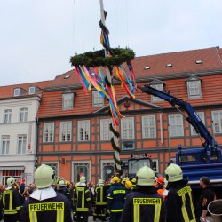Viel los heute beim Maibaum-Auftsellen und beim Start zur langen Einkaufsnacht. Ein Dank geht an die Kameraden der Feuerwehr Waren und Neubrandenburg sowie das THW Waren.