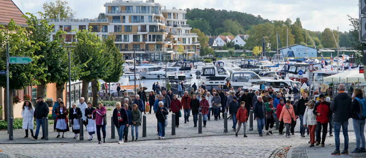 Wochenlang haben sie diese besondere Führung aufwändig vorbereitet, jedes Detail wurde genau und liebevoll geplant – und dieser Aufwand hat sich gelohnt: Warens Stadtführer unter der Leitung von Petra Hakert haben am Tag der Deutschen Einheit eindrucksvoll bewiesen: Waren ist ein singendes und klingendes Städtchen. Rund 100 Frauen und Männer wollten sich diese außergewöhnliche Führung durch das Heilbad nicht entgehen lassen und erlebten ein Rundgang, der häufig für Gänsehaut sorgte.