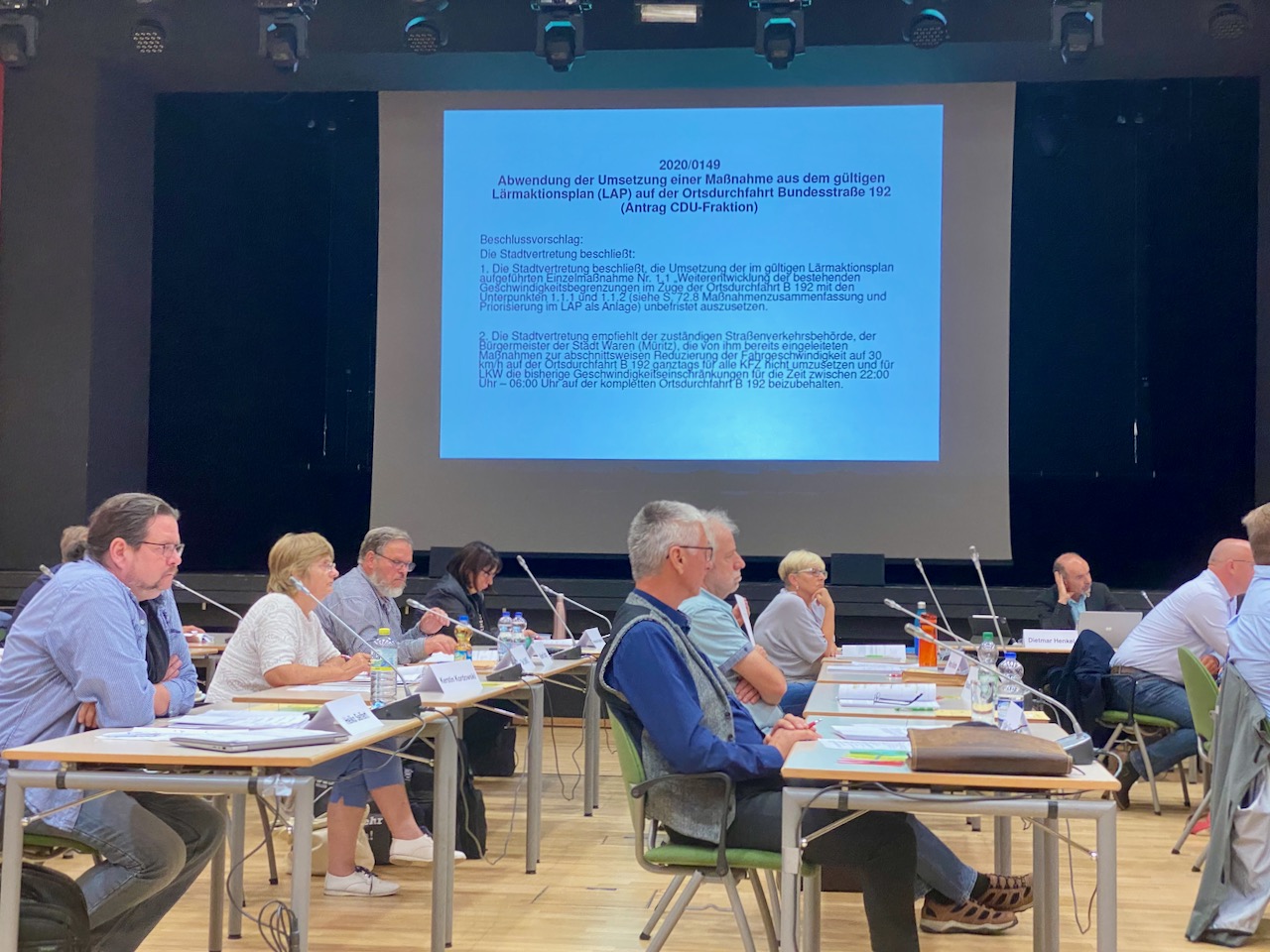 Im Antrag der CDU-Fraktion heißt es unter anderem, dass die Stadtvertreter dem Bürgermeister als zuständige Straßenbehörde empfehlen sollen, Tempo 30 auf der Warener Ortsdurchfahrt nicht durchzusetzen. „Tempo 30 löst unserer Meinung nach das Lärmproblem nicht, sondern schafft eine Menge neue Probleme. Wir können das Lärmproblem nur durch weniger Verkehr lösen“, so Christian Holz als stellvertretender Fraktionsvorsitzender. Zustimmung bekam er vom Chef der FDP/MUG-Fraktion, Toralf Schnur, der aber immer wieder darauf hinwies, dass Tempo 30 keine politische Entscheidung sei, sondern einzig und alleine die von Bürgermeister Norbert Möller. „Unser Mottot: Freie Fahrt für freie Bürger bleibt“, sagte Schnur und forderte Möller auf, klar Stellung zu beziehen.