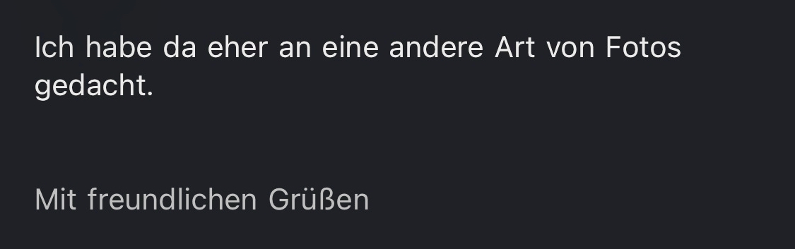 Daraufhin hat die 18-Jährige ihm umgehend zwei Bewerberfotos gesendet. Die Antwort des Verantwortlichen: „Ich habe da eher an eine andere Art von Fotos gedacht…“