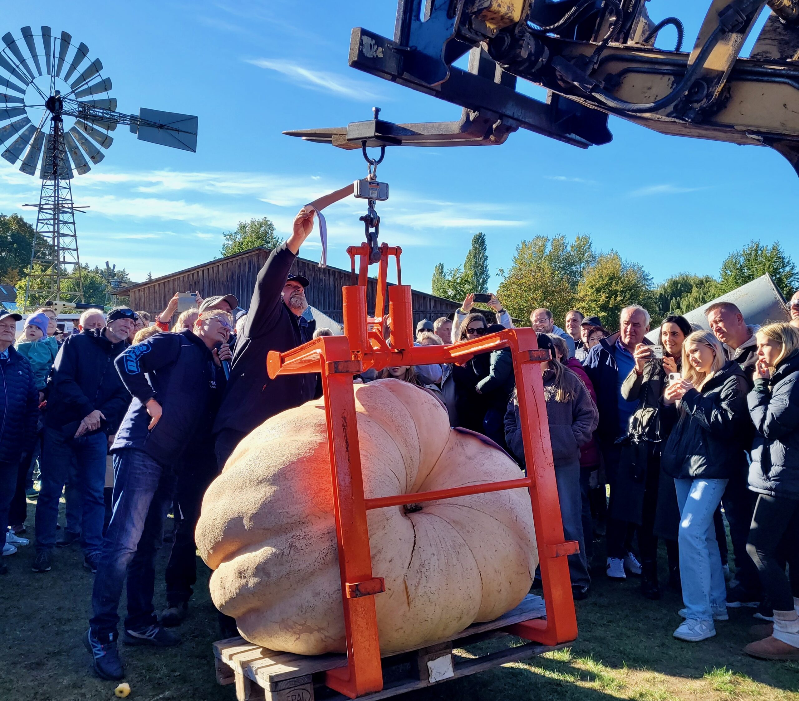 Strahlende Herbstfarben, stolze Kürbiszüchter und fröhliche Besucher: Das Kürbisfest im Agroneum Alt Schwerin hat gestern mehr als 2.500 Gäste aus der Region und darüber hinaus in das Freilichtmuseum gezogen. Im Mittelpunkt des Festes stand die mit Spannung erwartete Wahl zum „Kürbis-Riesen 2025“. Hobbygärtner und Kürbisfreunde traten mit ihren beeindruckenden Exemplaren gegeneinander an, um den Titel des schwersten Kürbisses des Jahres zu erringen. Nach dem offiziellen Wiegen standen die Sieger fest – und es gab einen neuen Rekord.