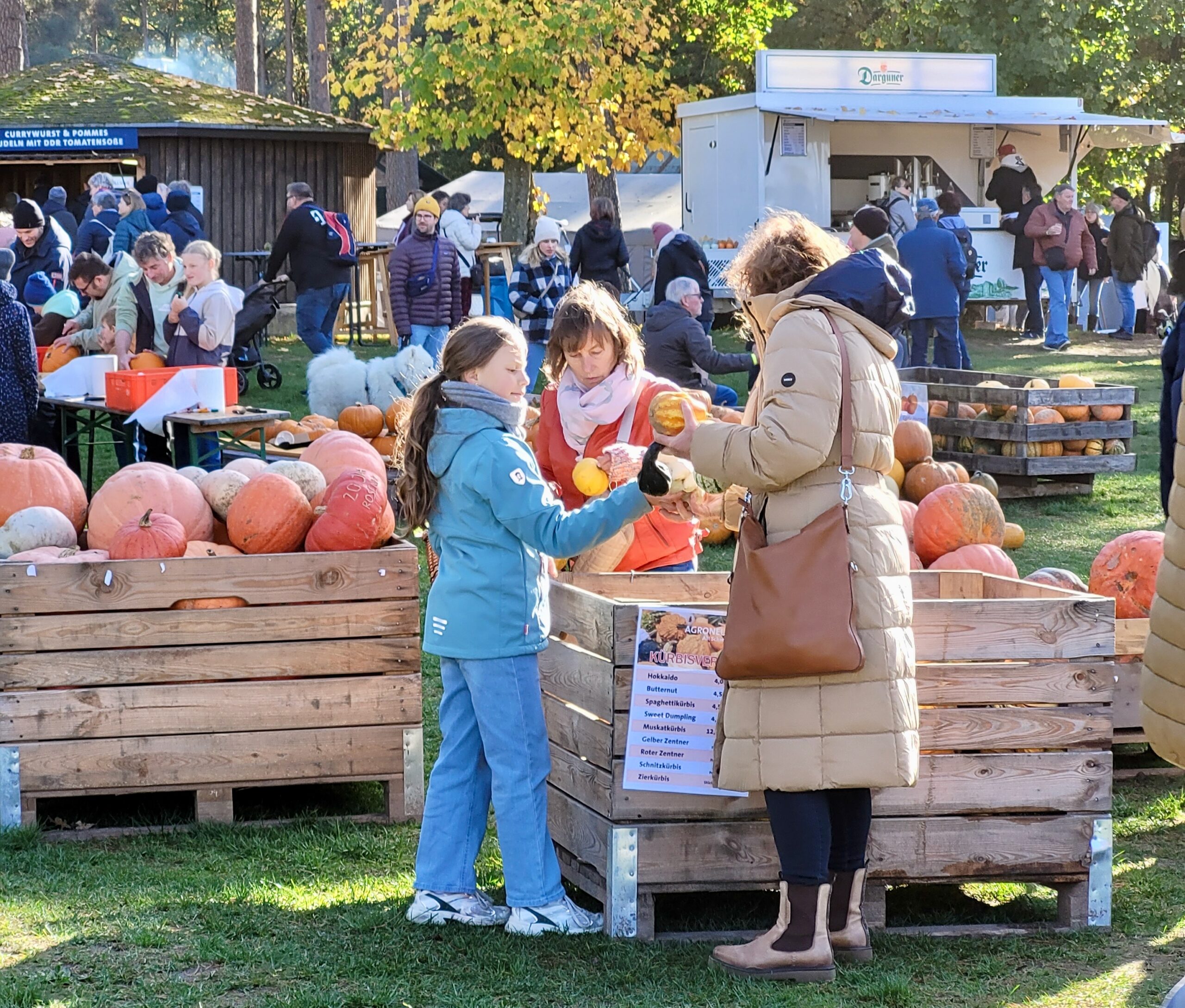 Neben dem Bühnenprogramm lud ein vielfältiges Familienangebot zum Mitmachen und Verweilen ein. Besonders beliebt war die Kürbis-Bastelwerkstatt, in der Kinder kreative Laternen und Figuren gestalteten. Auf dem Marktgelände boten Händler Kürbisse in allen Größen und Farben, Dekorationen und regionale Produkte an. Kulinarische Höhepunkte setzten die Köstlichkeiten aus der Museumsküche – von deftiger Kürbissuppe bis zu süßen Kürbiskuchenvariationen.