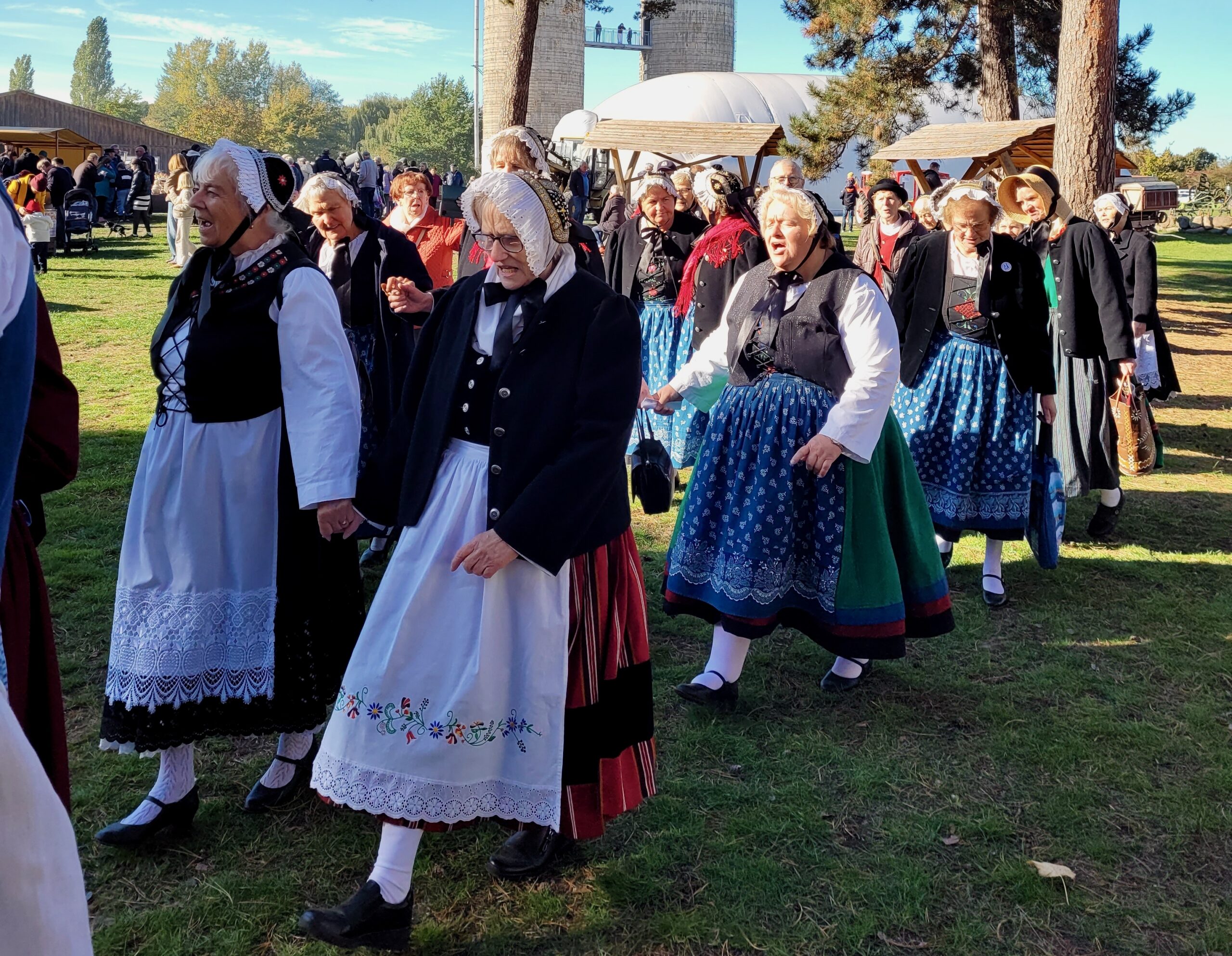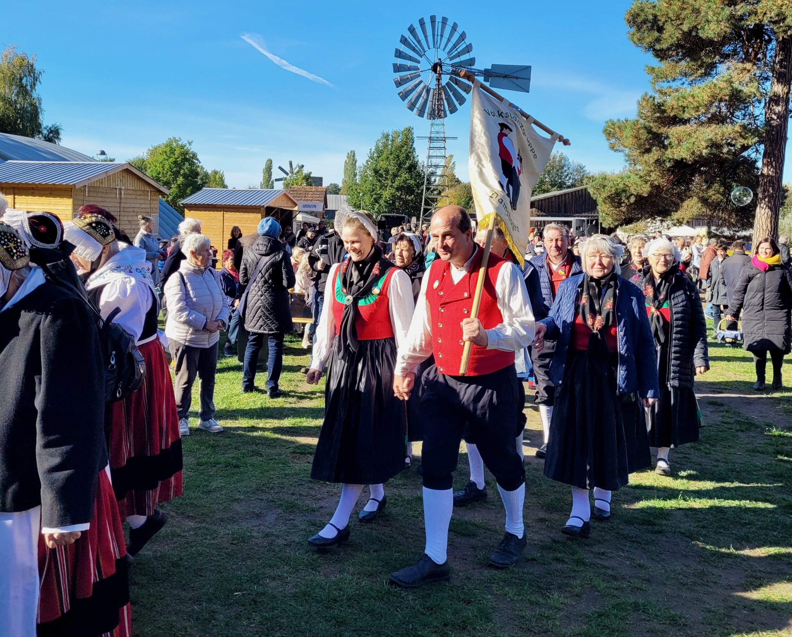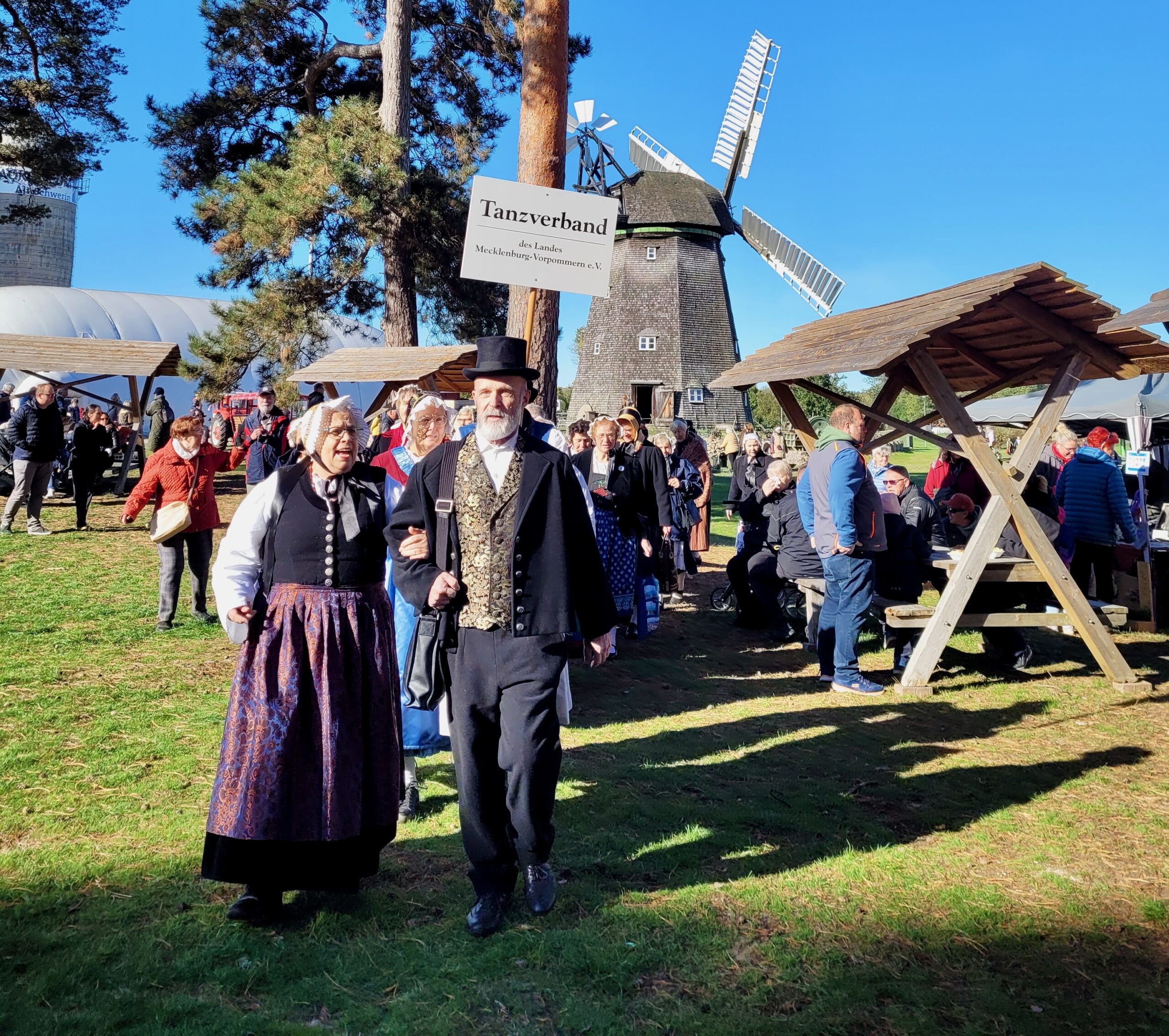 Parallel zum Kürbiswettbewerb sorgte der Tanzverband Mecklenburg-Vorpommern e.V. gemeinsam mit dem Heimatverband Mecklenburg-Vorpommern e.V. für ein stimmungsvolles Bühnenprogramm. Zum landesweiten „Tag der Tracht“ präsentierten die Tanzgruppen traditionelle Kleidung aus Pommern und Mecklenburg, darunter die Mönchguter Tracht, den Schweriner Warprock und die Remliner-Gnoiner Landtracht. Mit Tänzen, Musik und plattdeutschen Beiträgen brachten die Mitwirkenden die Kulturgeschichte der Region lebendig auf die Bühne und begeisterten das Publikum.