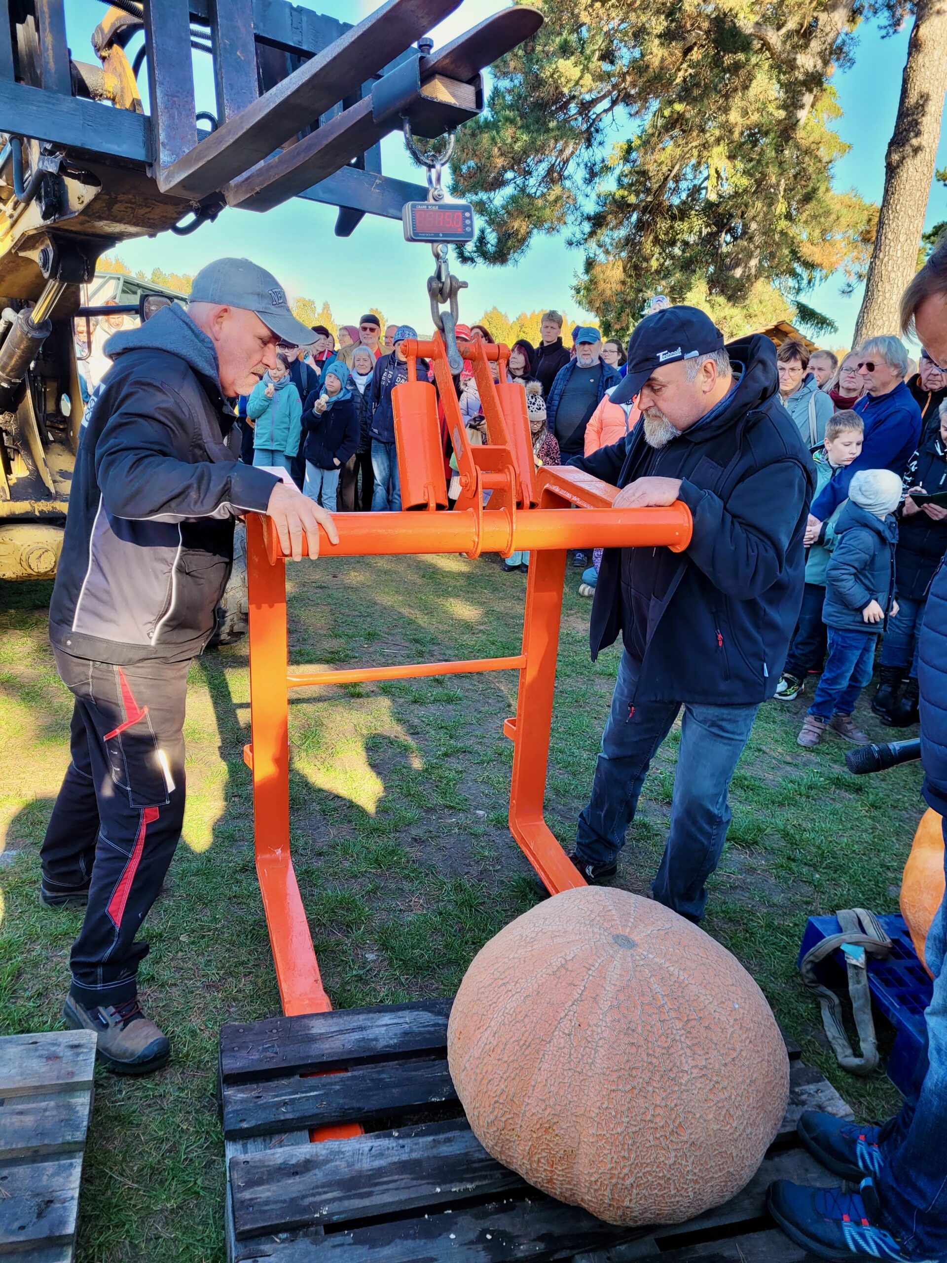 Auf Platz eins landete der Atlantic Giant von Andreas Kiefel aus Reckenzin mit sage und schreibe 560,5 Kilo. Andreas verteidigte damit seinen Titel. Den zweiten Platz belegte – wie schon im Vorjahr – Fiete Stutz. Sein Kürbis brachte 293,5 Kilogramm auf die Waage. Der Schüler war sichtlich stolz auf sein Ergebnis und freute sich über die große Aufmerksamkeit: Der NDR hatte ihn sogar in Röbel mit der Kamera besucht und zu seinem Kürbis befragt.