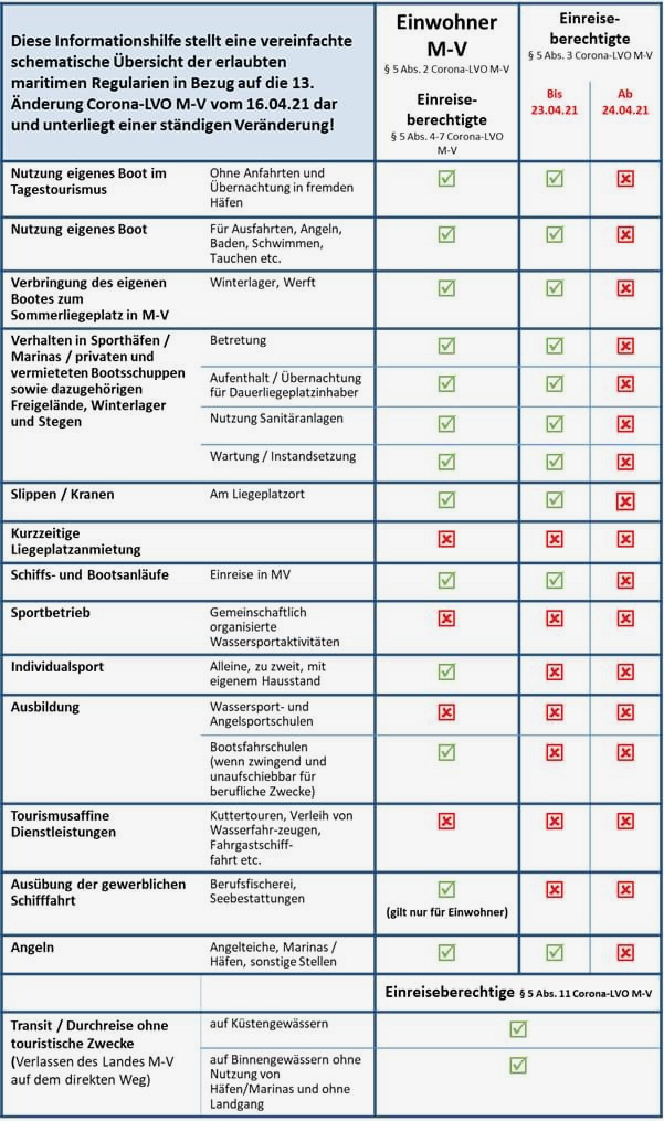 Die Wasserschutzpolizei des Landes Mecklenburg-Vorpommern hat in einer Übersicht zusammengefasst, was laut Corona-Verordnung derzeit auf und am Wasser erlaubt ist.