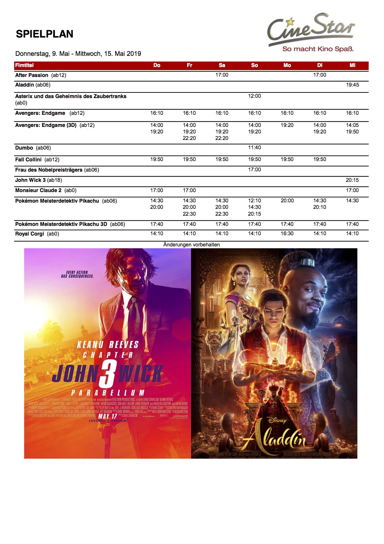 Das ab heute gültige Kinoprogramm für das CineStar in Waren: