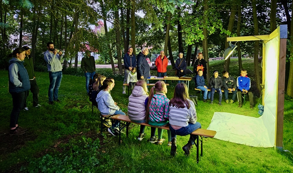 Der Abend startet mit einer kurzweiligen Führung, um sich auf die nächtliche Tierwelt einzustimmen. Anschließend geht es hinaus in den Museumsgarten: Hier sind verschiedene Lichtfallen aufgebaut, um die fliegenden Besucher der Nacht anzulocken.