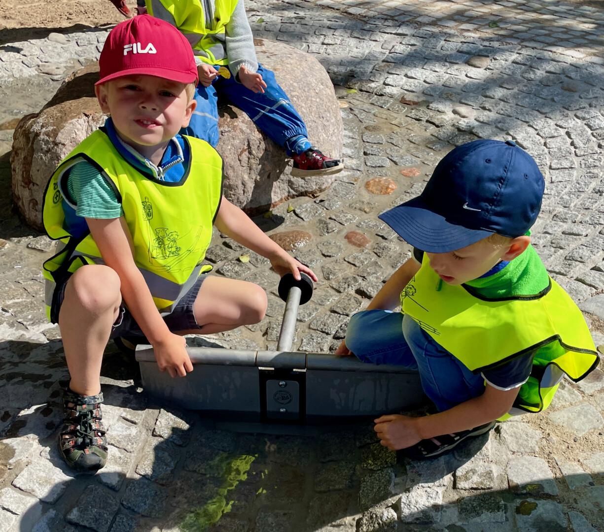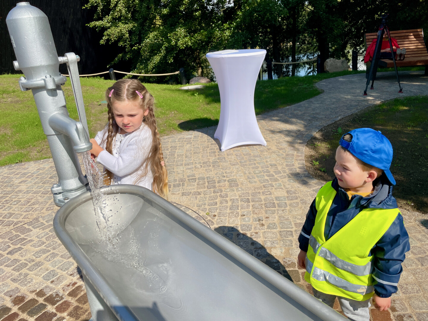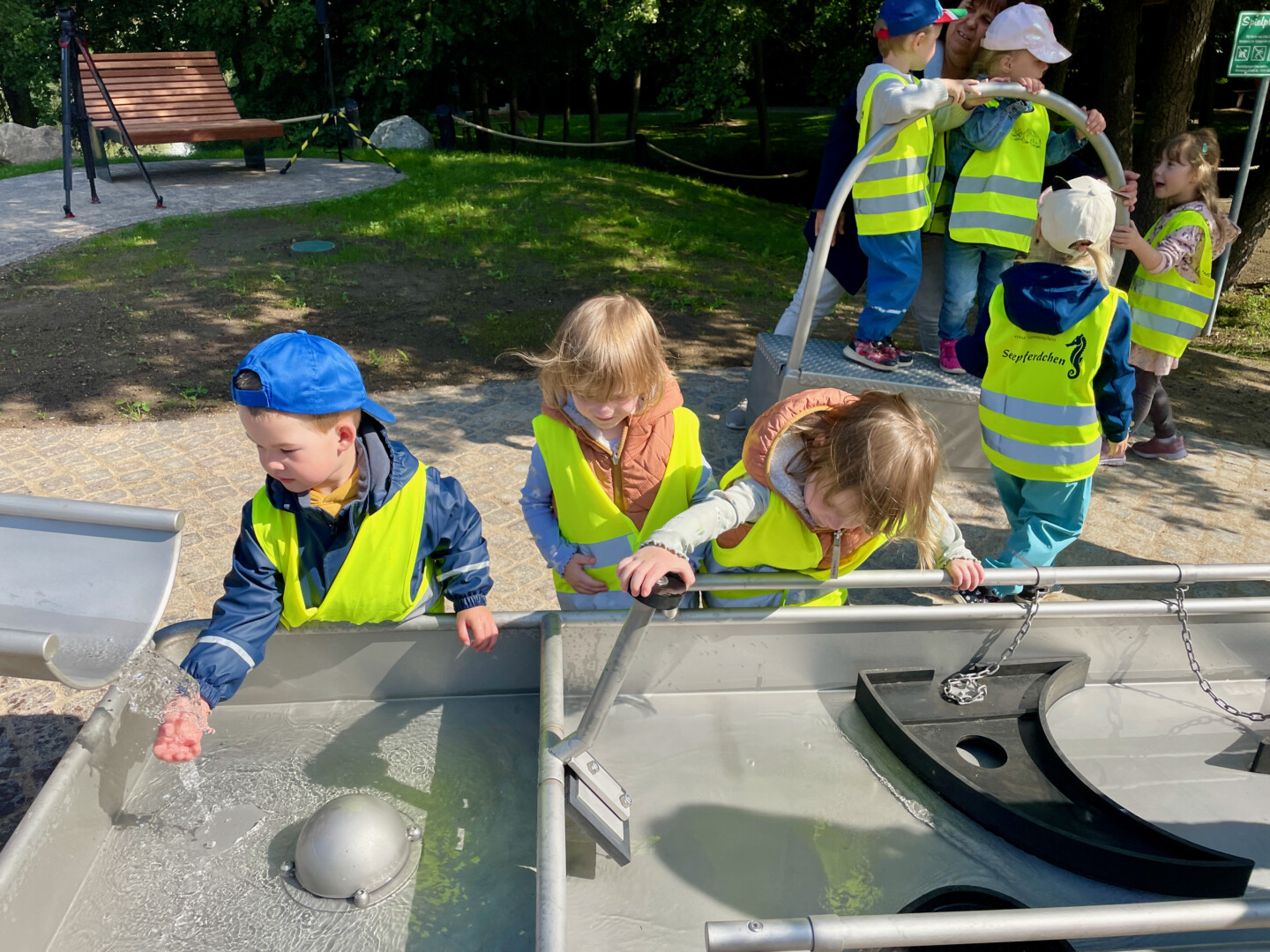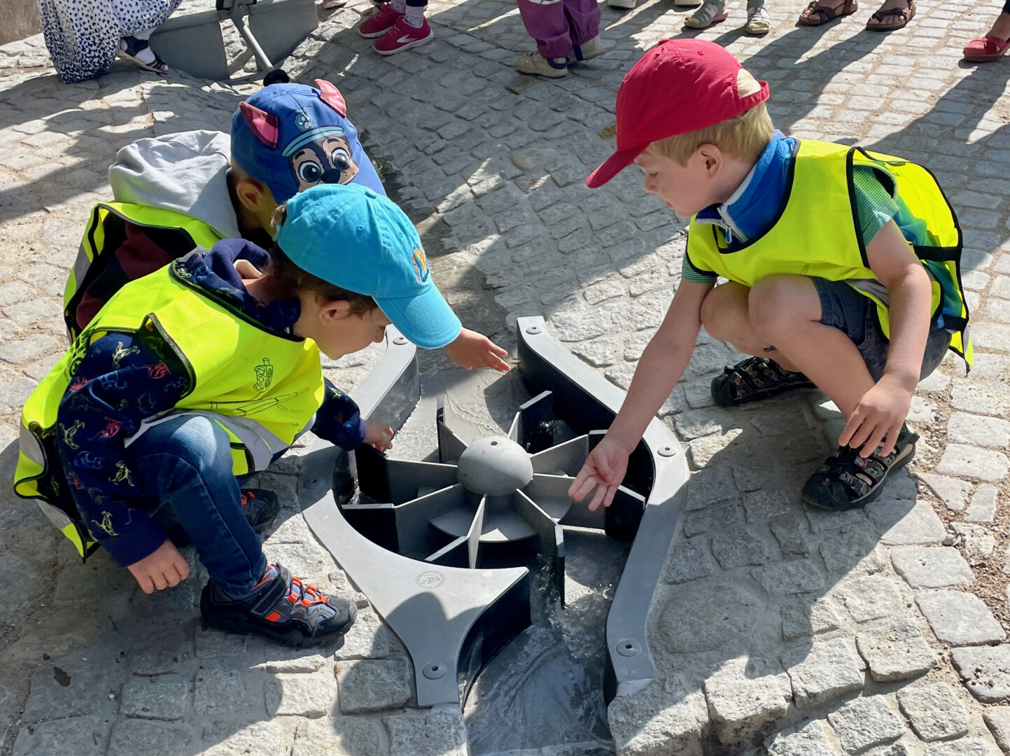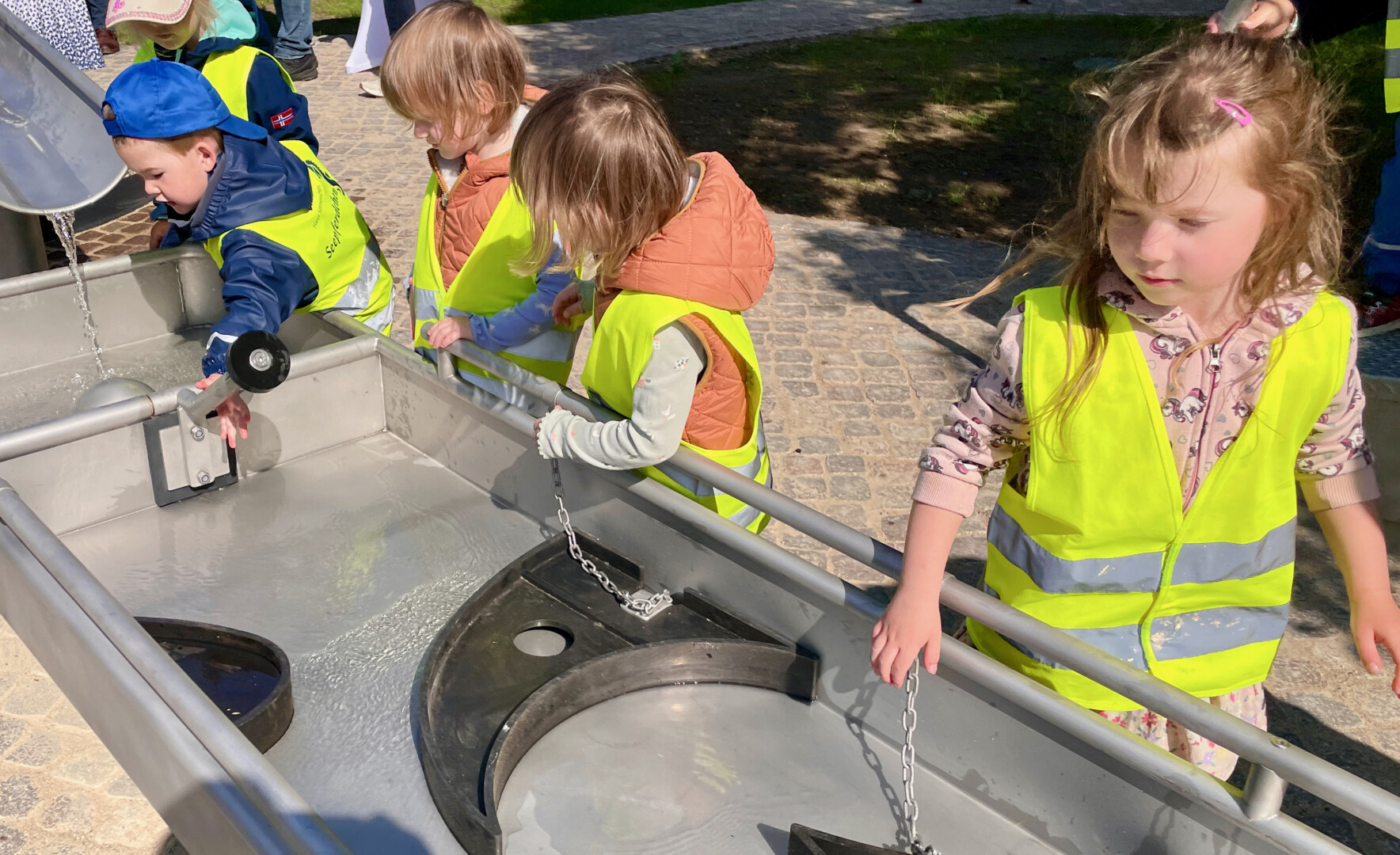 Der neue, viele Jahre geplante Wasserspielplatz soll aber nicht nur Kinder bei Laune halten, sondern auch den Umgang mit Wasser und das Element Wasser spielerisch vermitteln. Scheint zu klappen, die Mädchen und Jungen der DRK-Kita ließen gestern nichts aus und hatten schnell den Dreh raus, wann das Wasser wie fließt. Den einen oder anderen nassen Popo nahmen sie dabei laut lachend in Kauf.