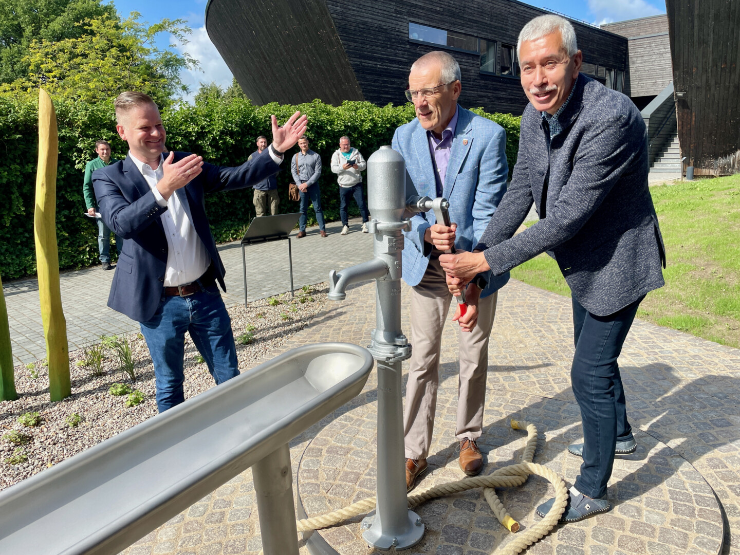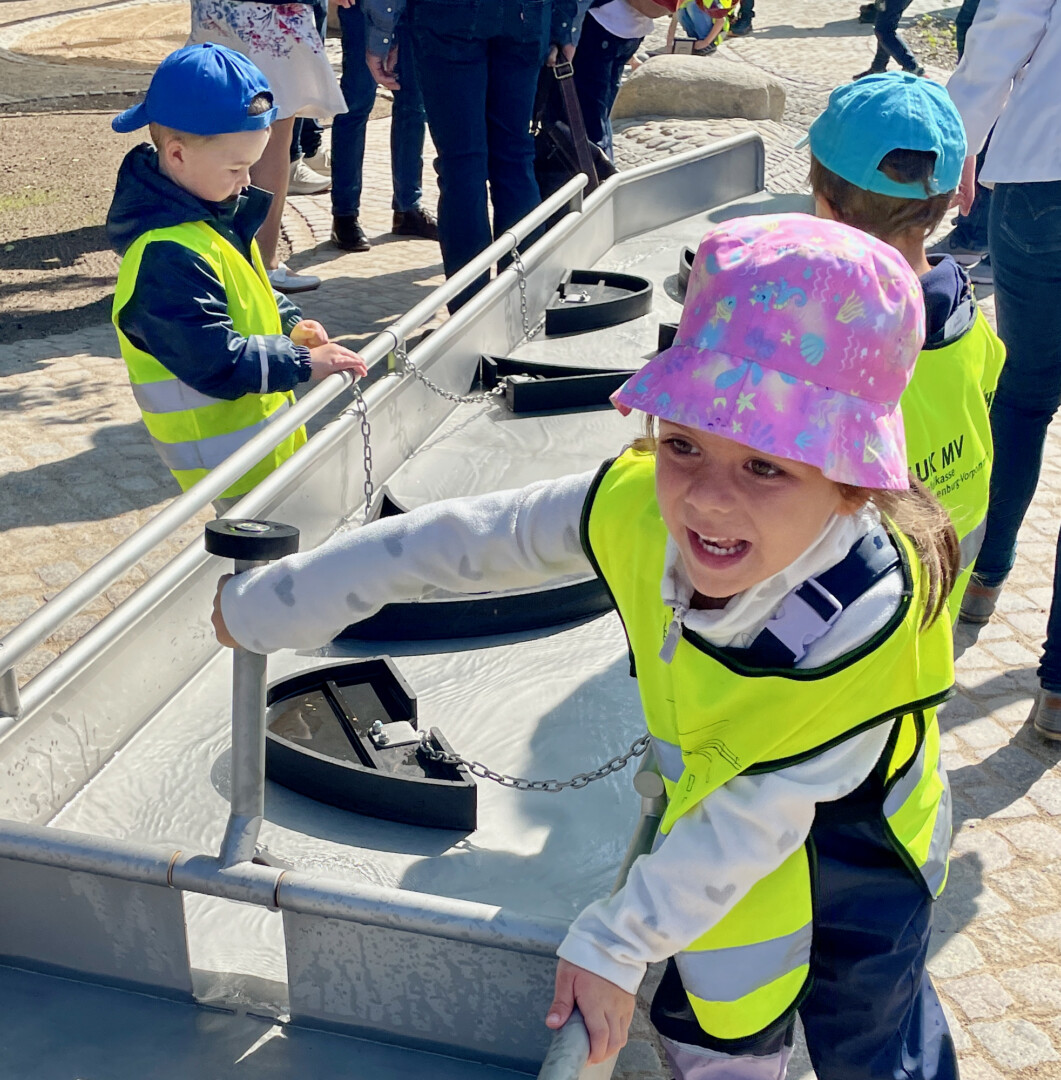 Da müssen die Initiatoren wohl komplett ins Schwarze oder besser Nasse getroffen haben: Der neue Wasserspielplatz auf dem Gelände des Müritzeums scheint richtig gut anzukommen. Die „Seepferdchen“ der DRK-Kita „Haus Sonnenschein“ konnten es bei der gestrigen Einweihung des neuen Wasserspielplatzes gar nicht erwarten, dass endlich Wasser fließt. Die Reden der Offiziellen fanden die Knirpse – sagen wir mal so – eher langweilig und zögerten keine Sekunde, als die vorbei waren und es endlich los ging. Schon nach wenigen Sekunden kreischten die ersten Mädchen und Jungen, probierten alles aus und mussten hinterher wohl schnell umgezogen werden. So soll es sein, wie Dr. Mathias Küster als Geschäftsführer des Müritzeums sagt.