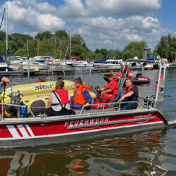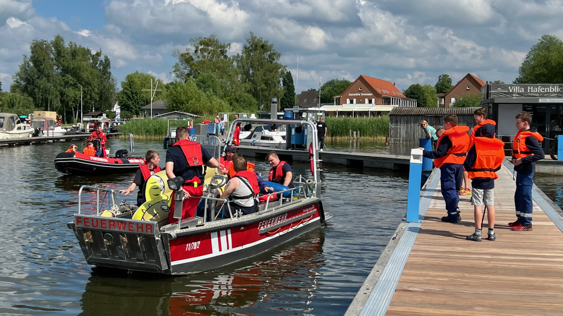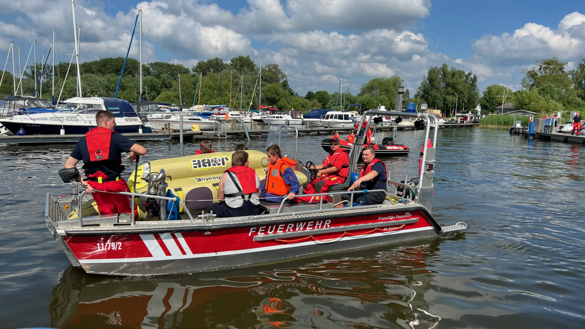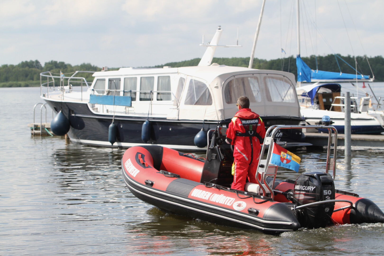 Geübt wurde unter anderem die Rettung von Menschen auf der Müritz und dem Claassee. Die Feuerwehr Rechlin stellte dabei das Führungsboot für die einzelnen Szenarien.