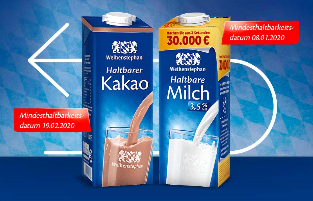 Die Molkerei Weihenstephan ruft bundesweit Milch und Kakao zurück. Wie das Unternehmen mitteilt, könnte ein Produktionsfehler zum vorzeitigen Verderb der betroffenen Chargen führen. Von dem Rückruf betroffen sind die Ein-Liter-Tetrapacks von „Weihenstephan H-Milch 3,5 %“ mit dem Mindesthaltbarkeitsdatum 8. Januar 2020 sowie „Weihenstephan H-Kakao“ mit dem Mindesthaltbarkeitsdatum 19. Februar 2020. Nach Angaben der Molkerei ist der frühzeitige Verderb der Produkte sowohl optisch als auch über den Geruch deutlich erkennbar. Alle übrigen Sorten, Produkte und Mindesthaltbarkeitsdaten der Marke Weihenstephan sind nicht betroffen.