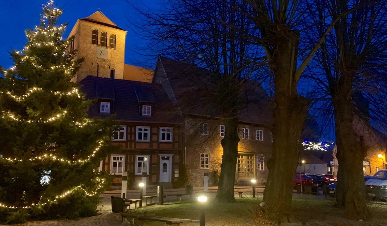 Während Warens Prachtbaum auf dem Neuen Markt noch im Dunkeln schlummert, sorgt die ebenfalls perfekt gewachsene Tanne auf dem Alten Markt bereits für weihnachtliche Stimmung.