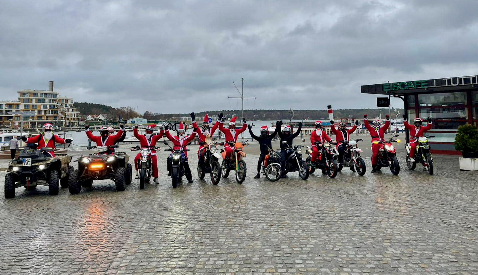 Sie haben heute unter anderem am Warener Hafen für viel Freude gesorgt – die Weihnachtsmänner auf Rädern.