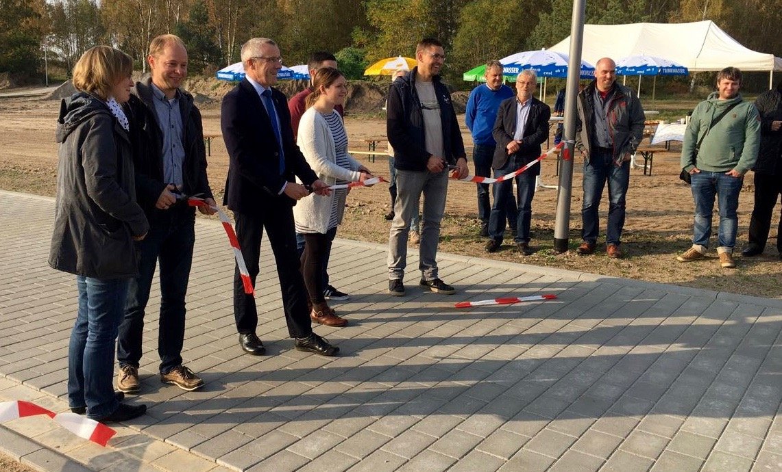 Feierlicher Abschluss der Erschließung von weiteren 28 Grundstücken im Baugebiet „Wiesengrund“ in Waren: 16 Grundstücke davon hat die Cassens Baustoffe GmbH & Co. KG veräußert, 12 die Stadt Waren.