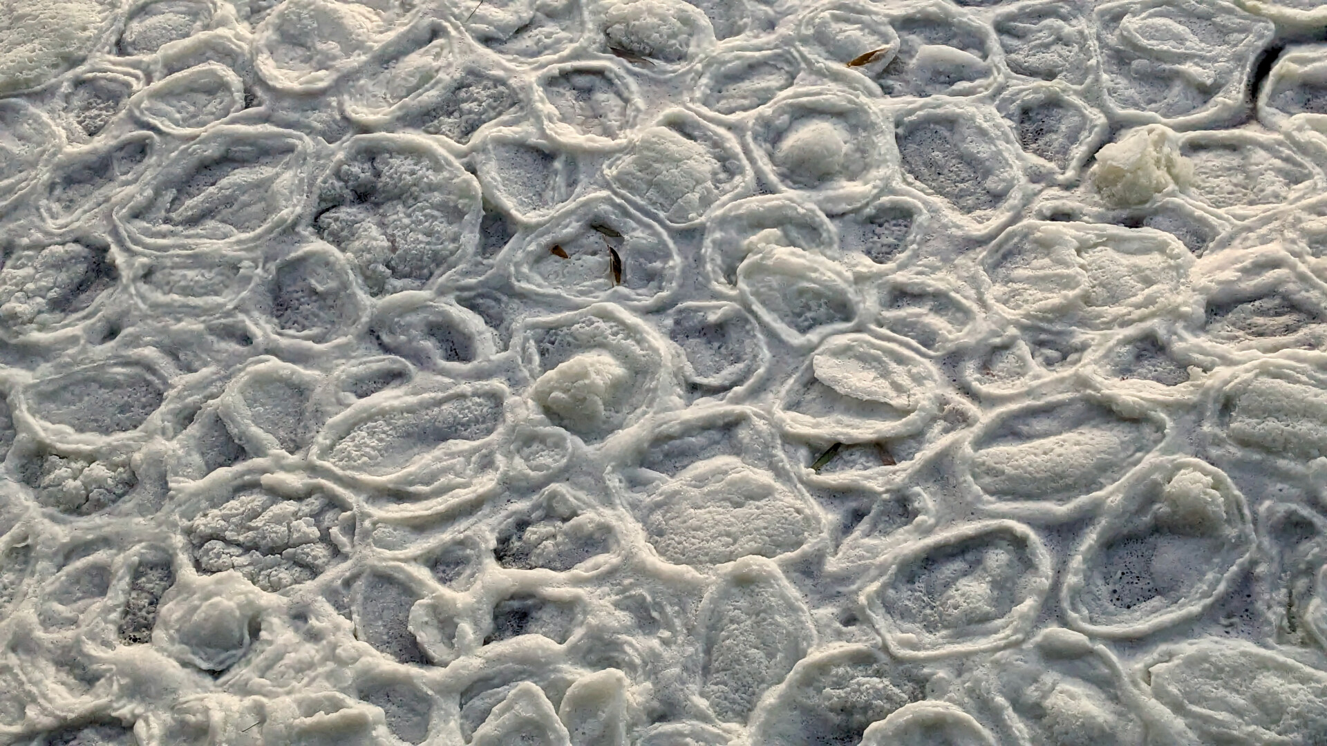 Als langjähriger Steuermann auf dem Forschungseisbrecher „Polarstern“ ist mir dieses Eis aus Arktis und Antarktis vertraut. Pfannkucheneis und upp Platt klingt es noch schöner.