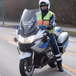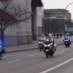 An insgesamt 23 Kreuzungen standen Beamte haben den Verkehr gesperrt, damit die ca. 250 Meter lange Kolonne ohne Störungen passieren kann.