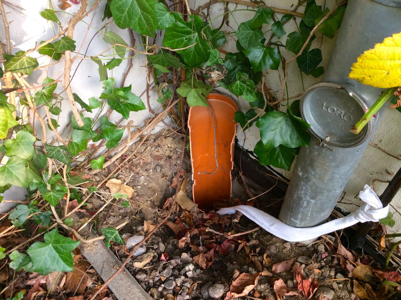 Bis der Hausmeister Herr Milinski feststellte, dass dieses Wimmern aus einem Abflussrohr, das etwa 30 cm aus der Erde ragt, kommt.