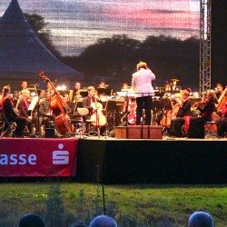 Damit das auch alles so klappt, wie es der „große Meister“ wünscht, ist viel Training nötig. Schon im März haben die „Golfonics“ – 2 Frauen und 12 Männer – mit den Vorbereitungen begonnen. Zunächst alle mit einem Knopf im Ohr, über den sie die Anweisungen zum Abschlag erhielten. Diesen Knopf brauchten sie gestern Abend natürlich nicht mehr. Sie ließen ihre Leuchtbälle gekonnt Walzer tanzen oder im Polka-Rhythmus fliegen und schmetterten zum großen Hummelflug-Finale hunderte Bälle durch den inzwischen tiefdunklen Nachthimmel. Stehende Ovationen waren ihr Dank. Und die Gewissheit, auch Nicht-Klassik-Fans von der Musik und dem besonderen Konzert begeistert zu haben.