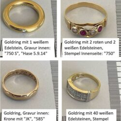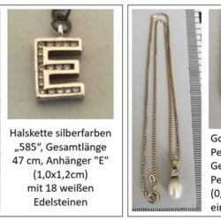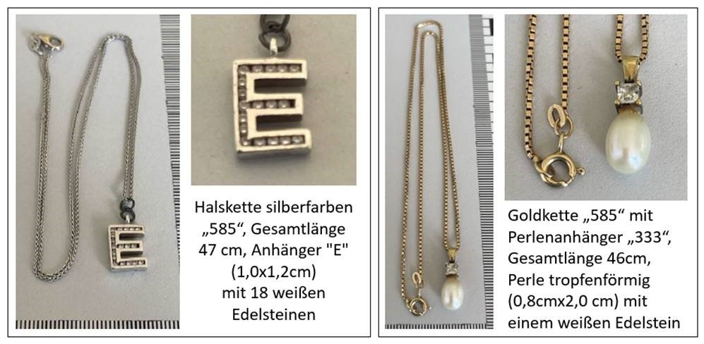 Bei den sichergestellten Schmuckstücken handelt es sich um folgende Schmuckstücke (siehe Fotos):
