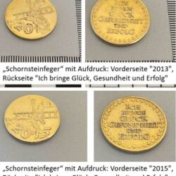 - Münze mit Aufdruck: Vorderseite „2013“, Rückseite „Ich bringe Glück, Gesundheit und Erfolg“