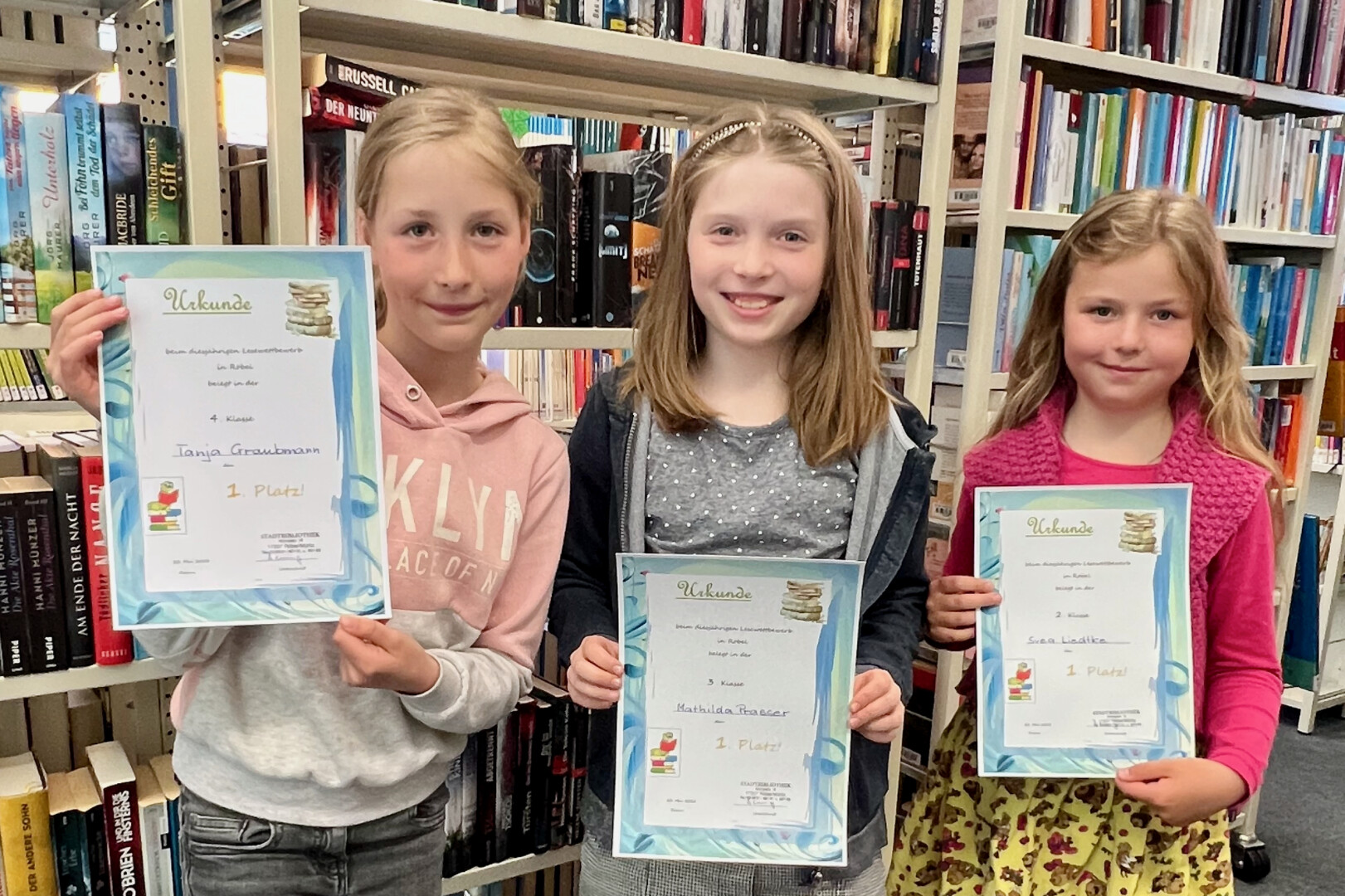 Für sie war es ganz sicher keine einfache Aufgabe, die Kinder einzuschätzen und die Punkte objektiv zu verteilen, denn alle Kinder haben ihr Bestes gegeben und gezeigt, dass auch die jungen Leser schon richtig lebhaft und betont vorlesen können. Doch das Ziel eines Wettbewerbs ist es, Gewinner zu finden. Vor der Siegerehrung wurden alle Teilnehmer von Christa Schardin, ebenfalls Jurymitglied, gelobt und bestärkt in dem Wissen, dass alle an diesem Tag bereits Sieger sind. Jeder hat sich an seiner Schule behauptet und durfte den Schulvormittag mal woanders als im Klassenraum verbringen und seine Schule vertreten.