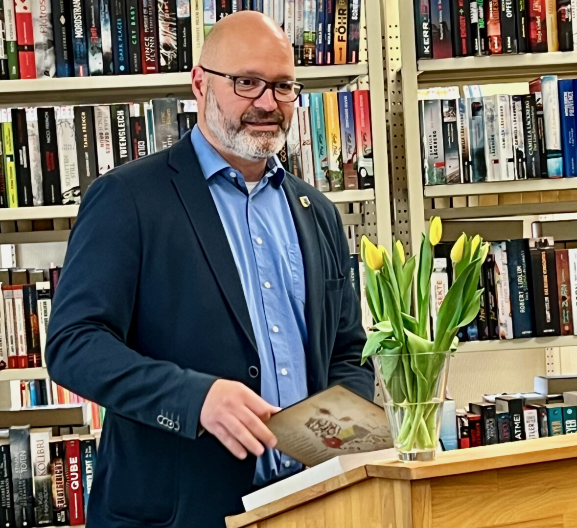 Eröffnet wurde die Veranstaltung von Reiko Tulke, 1. Stadtrat aus Röbel. Dass diese Veranstaltung für ihn nicht nur eine offizielle Aufgabe darstellt, sondern er genau wie alle Anwesenden die Liebe zum Lesen teilt, stellte er sogleich unter Beweis. Er brachte nämlich selbst ein wunderbares Kinderbuch mit, dessen Illustratorin Astrid Kaden er sogar persönlich kennt und las sehr lebendig aus dem Buch „Ella und der Fluch des Magiers“ von Mario Kaden vor. Die Kinder lauschten angeregt und stellten einstimmig fest, dass Röbels 1. Stadtrat auch ein ausgezeichneter Vorleser ist.