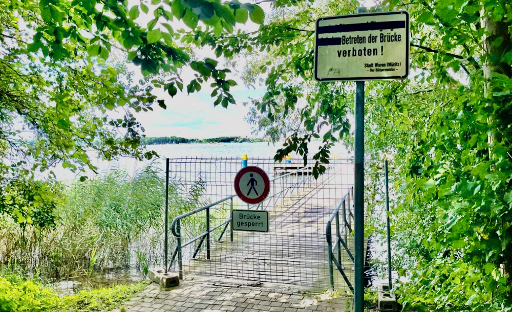 Wir werden es alle verschmerzen, dass zwei Brücken nicht begehbar sind. Ist ja nun nicht wirklich existenziell mega wichtig für das Leben in Waren (Müritz).