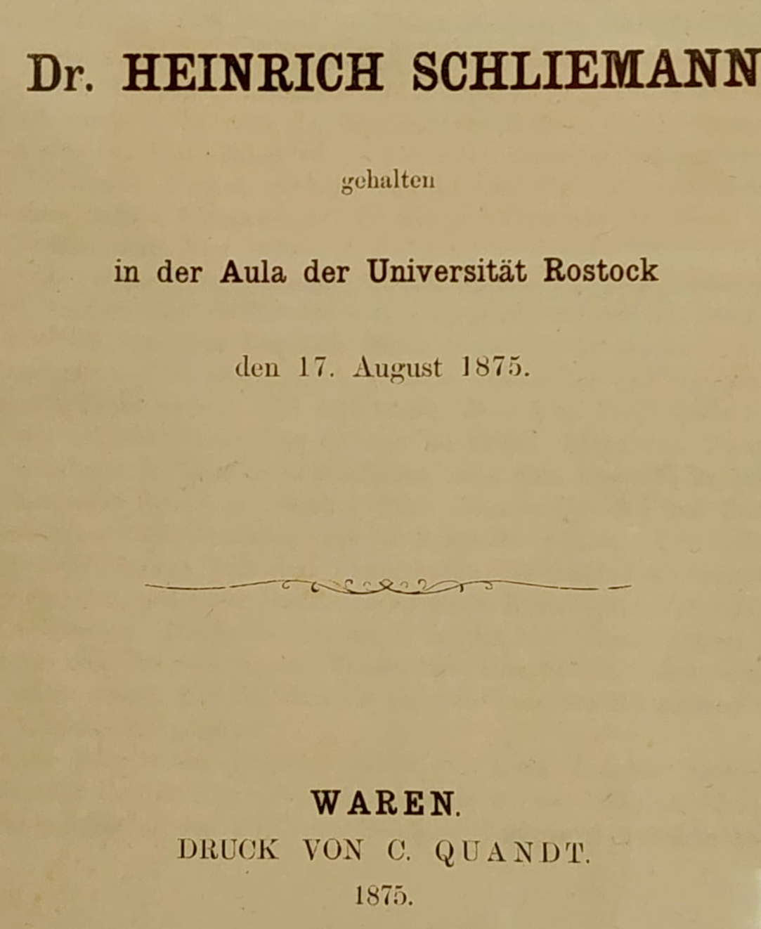 Die Ausstellung wird bis 9. Oktober im Obergeschoss des Ex-Pfarrhauses und Museums gezeigt, zusätzlich zur immer noch relativ neuen Dauerschau. Das wird hoffentlich auch viele Gäste aus Berlin und anderen Orten nach Ankershagen locken, hoffen die Museumsmacher. Die ersten wichtigen Leute kamen bereits am Dienstag zu einem Festakt. Die heutige Bundeshauptstadt Berlin hat übrigens Schliemann und Virchow wegen ihrer Verdienste auch als „Ehrenbürger“ anerkannt. In der Schau wird auch eine Druckerei Quandt aus Waren erwähnt: In ihren Räumen wurde die Einladung zu einem Vortrag von Schliemann am 17. August 1875 an der Universität Rostock im Jahr gedruckt.