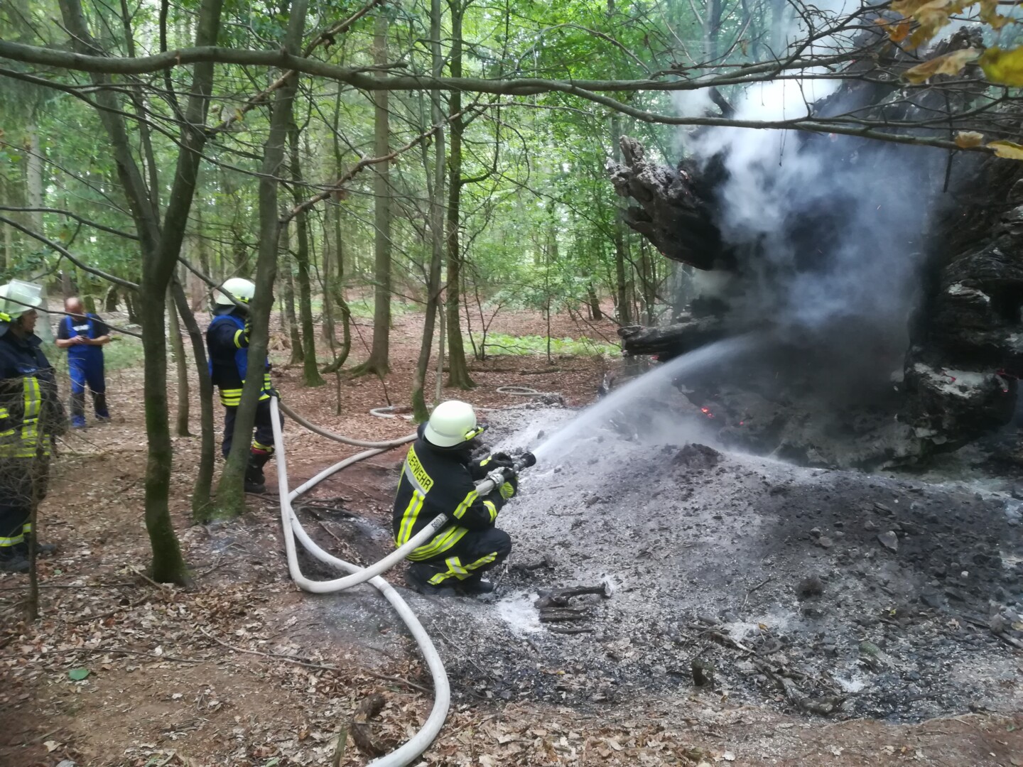 Jeden Brand bitte unverzüglich der Feuerwehr (Notruf 112), Forstdienststelle oder Polizei melden.