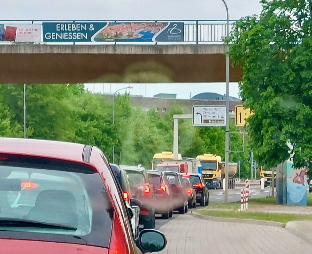 Da ist wohl bei der letzten, sehr aufwändigen Sanierung vor rund einem Jahr etwas schief gegangen: Am kommenden Mittwoch, 4. Oktober, rückt erneut eine Firma auf dem Schweriner Damm in Waren an, um die Fahrbahn zu reparieren. Bei der Abnahme der damaligen Bauarbeiten sind laut Straßenbauamt Neustrelitz Mängel festgestellt worden. Und die werden jetzt behoben. Und zwar auf der Fahrbahn in Richtung Neubrandenburg im Bereich der Unterführung. Die Mängel werden nun im Rahmen der Gewährleistung abgearbeitet. Während der Arbeiten muss der linke Fahrstreifen in Richtung Neubrandenburg gesperrt werden. Der Verkehr wird einspurig an der Baustelle vorbeigeführt. Wie lange das dauert, hat das Straßenbau nicht mitgeteilt.