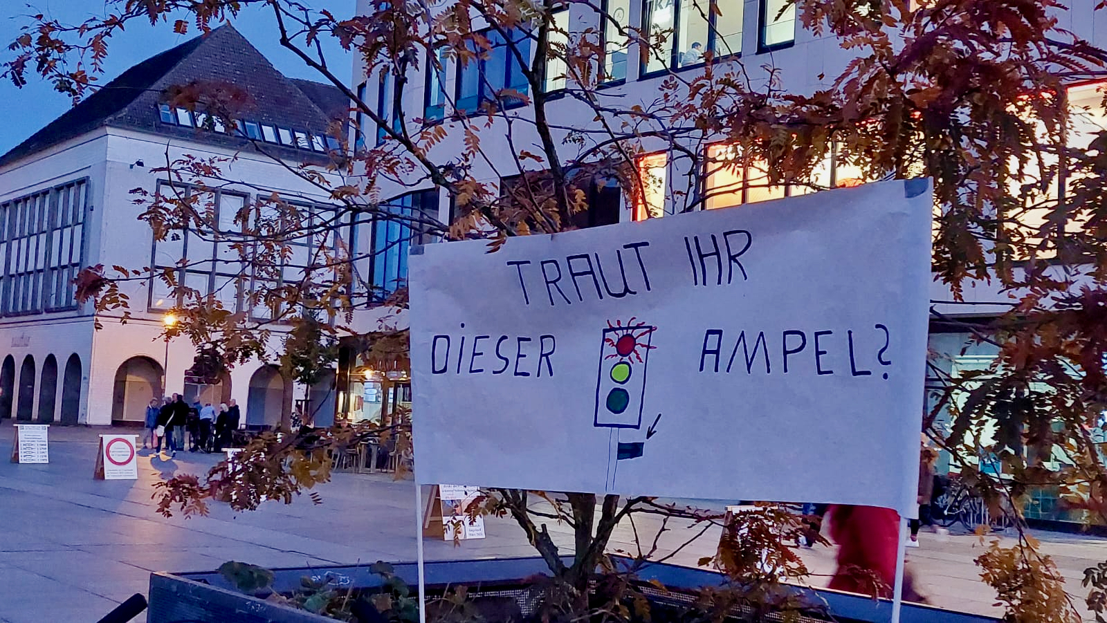 Doch die Gründe für viele Montagsdemonstranten sind und bleiben vielfältig, teils sogar widersprüchlich. So waren diesmal auch wieder die Corona-Protestler mit Aufstellern in Neubrandenburg dabei. Eine Frau trug ein Banner mit dem Spruch „Kein Flüssiggas aus den USA“ und „Frieden mit Russland“. Ein Demonstrant traute der Ampel-Koalition in Berlin gar nicht mehr und hat dazu ein Plakat gemalt – mit Abbiegepfeil.