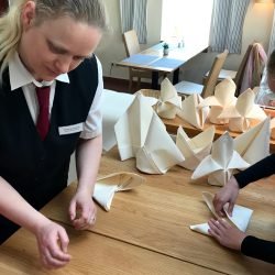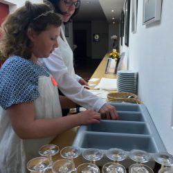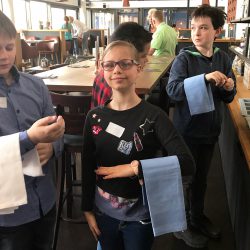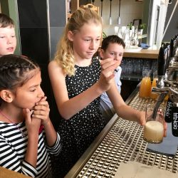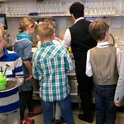 Kati Strasen, Chefin im Hotel und Restaurant „Kleines Meer“, hat die Schüler mit ihrem Team in die festliche Tischdeko eingeführt. Schließlich sollen sich die Gäste von der ersten Minute an wohl fühlen. Dabei haben die Kids gelernt, dass man gar kein besonderes und teures Material braucht. Vielmehr ist auch Phantasie gefragt. Wie beim Falten der Servietten. Und auch beim Mixen von Cocktails – alkoholfreien, versteht sich.