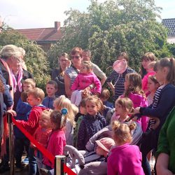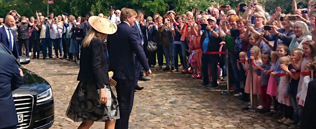 „Neeeiiin , Königinnen haben keine Krone auf, nur Elsa, von Anna und Elsa“, erklärte ein vierjähriges Mädchen in Bollewick den Reportern eindeutig. Zusammen mit anderen Kitakindern wartete die Kleine hinter dem Absperrband auf das niederländische Königspaar Willem-Alexander und Máxima. Alle Kinder gaben zu, bisher noch keine Königin und einen König gesehen zu haben und dann war es soweit: Gegen 11.30 Uhr fuhren erst mehrere Karossen durch, dann hielt ein schwarzes Auto, und Willem-Alexander stieg als Erster aus. „Wie geht’s?“, rief er und begab sich gleich zum Händeschütteln zu fast 100 Gästen, die in der Sonne warteten.