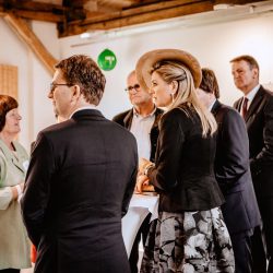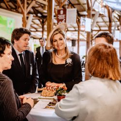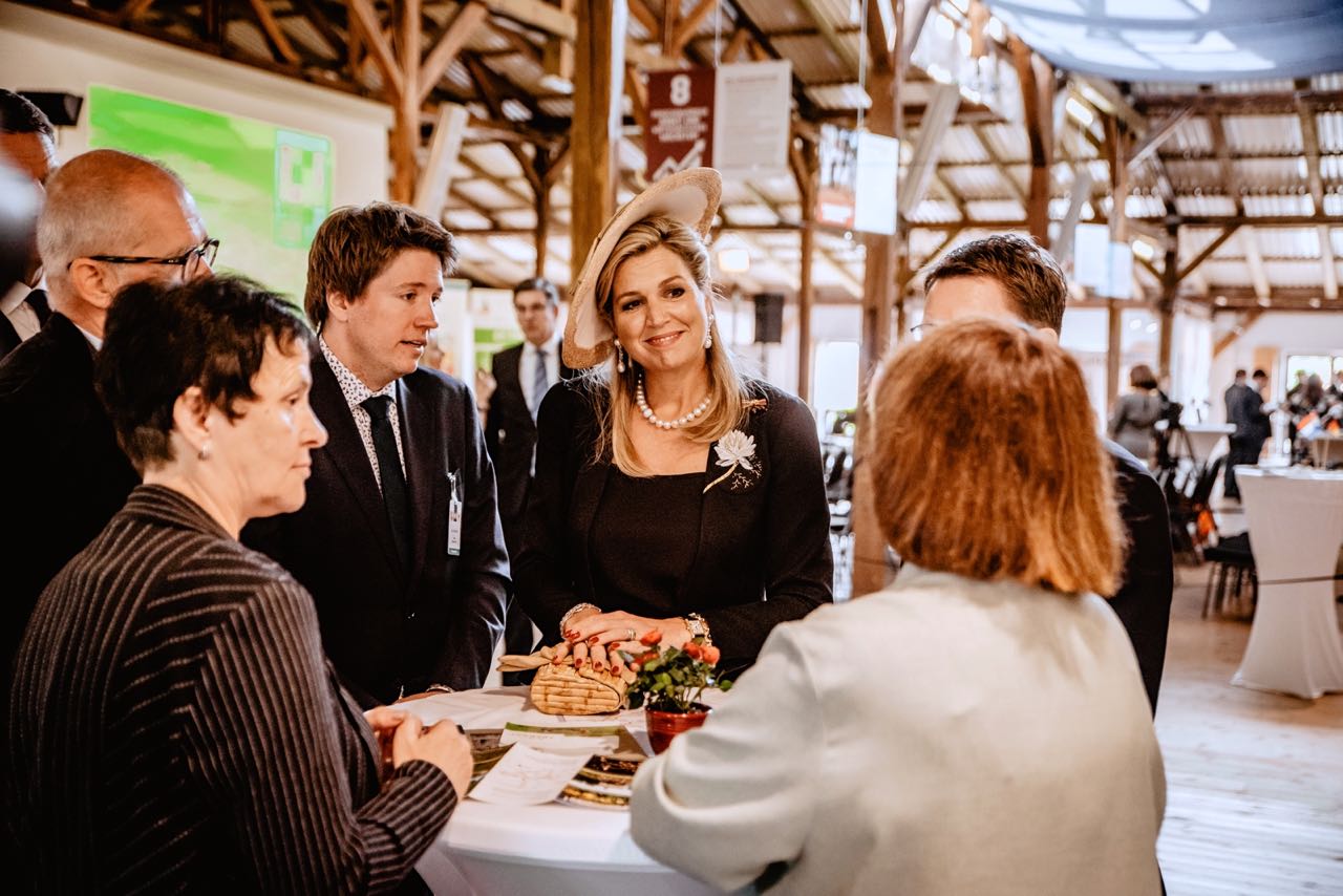 Auch seine Frau Maxima zeigte keine Scheu, ohne Krone, aber mit Hut. Sie schüttelte viele Hände, winkte und sagte kurz ein paar Worte, dann ging es zum Seminar auf die Tenne.