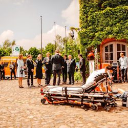 Neben weiteren Projekten sahen sich die Holländer auch noch zwei Rettungsdienst-Vorhaben an, darunter ein Telenotarztprojekt. Dabei lag eine Radlerin nach einem Sturz mit einer fiktiven schweren Wunde auf dem Boden. Die Rettungssanitäter waren schon da und versorgten den Notarzt, der in einer Zentrale saß, mit Informationen. Dadurch konnten die Medikation festgelegt und die Behandlung abgeschlossen werden. Das sei eine Möglichkeit, die Notfallversorgung in ländlichen Regionen zu sichern, sagte Regierungschefin Manuela Schwesig.