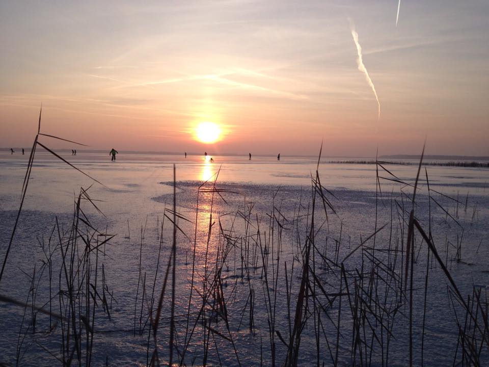 Der Winterspaß heute auf dem flachen Kölpinsee wurde soeben von einem herrlichen Sonnenuntergang gekrönt.