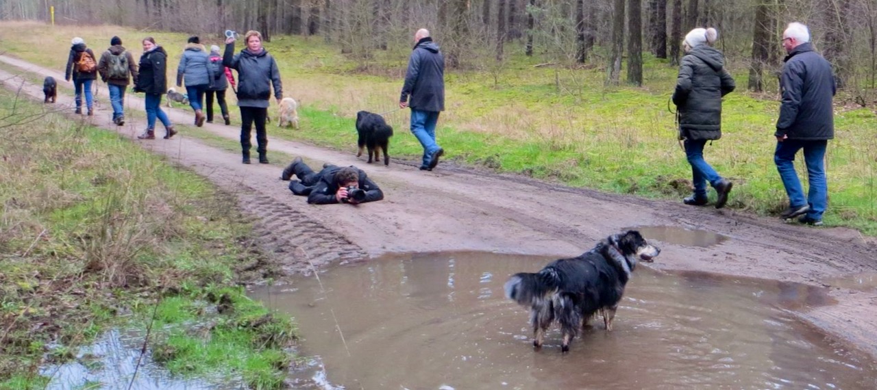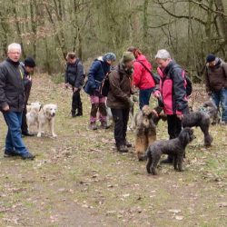 Auch die zweite Winterwanderung 2020 des Allgemeinen Hundevereins Kiebitzberg e.V. ist wieder gut angenommen worden. Trotz regnerischen Wetters am Samstagvormittag vertrauten etwa 30 Hundefreunde auf die Vorhersagen, die ab Mittag nachlassenden Niederschlag und vereinzelten Sonnenschein verhießen, und kamen mit ihren 22 Vierbeinern zum Treffpunkt an der Shell-Tankstelle Waren-West. Für ihren Mut wurde sie mit einer Wanderung belohnt, die in entspannter Atmosphäre verlief und einige kleine Aufgaben für die Mensch-Hund-Teams beinhaltete.