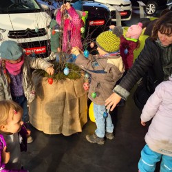 Für die richtige Deko im Autohaus Multhaup haben gestern übrigens die Mädchen und Jungen der Kita „Klinker Knirpse“ gesorgt. Sie rückten mit ihren Bastelarbeiten an, schickten die Mitarbeiter des Autohauses in ihre Büros und passten kleinlich genau auf, dass sie nicht „luschern“.
