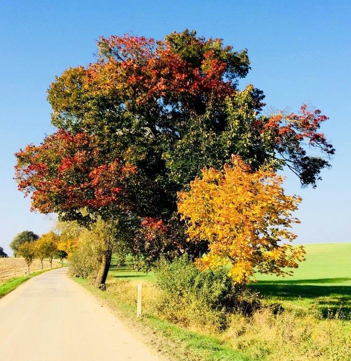 Auf einen weiteren sonnigen Herbsttag! So farbenfroh präsentiert sich die Landschaft zwischen Penzlin und Siehdichum.