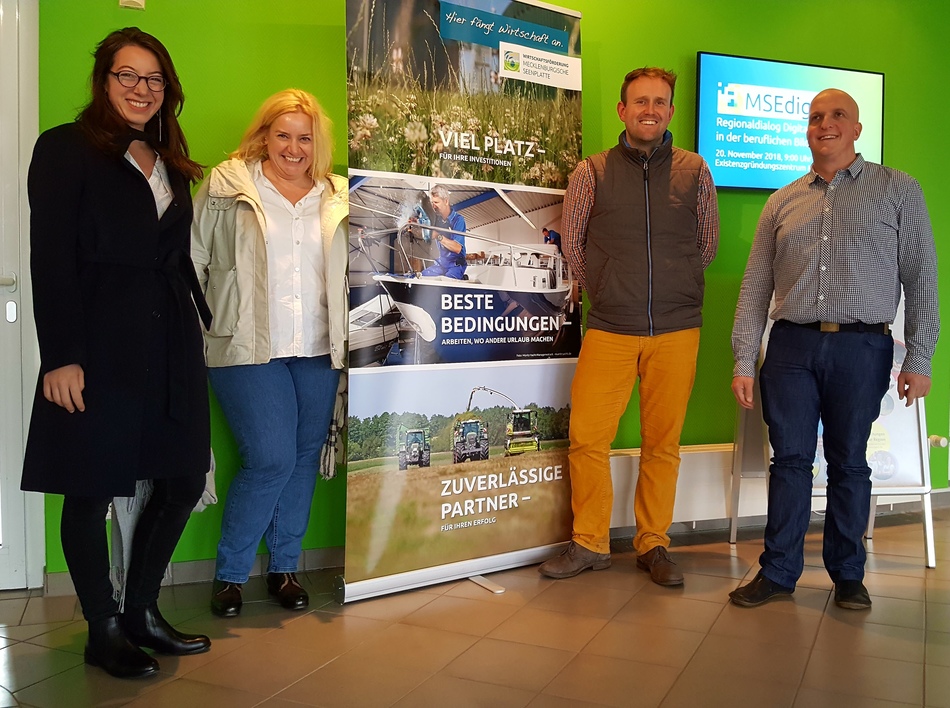 Im Rahmen der dieswöchigen Gründerwoche trafen sich Vertreter der Wirtschaftsförderung Mecklenburgische Seenplatte und SAP im Existenzgründungszentrum in Waren. Die Strategieentwicklerinnen Heike van Geel und Leonie Fremgen von SAP diskutierten mit den Fachreferenten Martin French und Michael Thurm mögliche Kooperationen im Bereich regionaler Wirtschafts- und Innovationsförderung.
