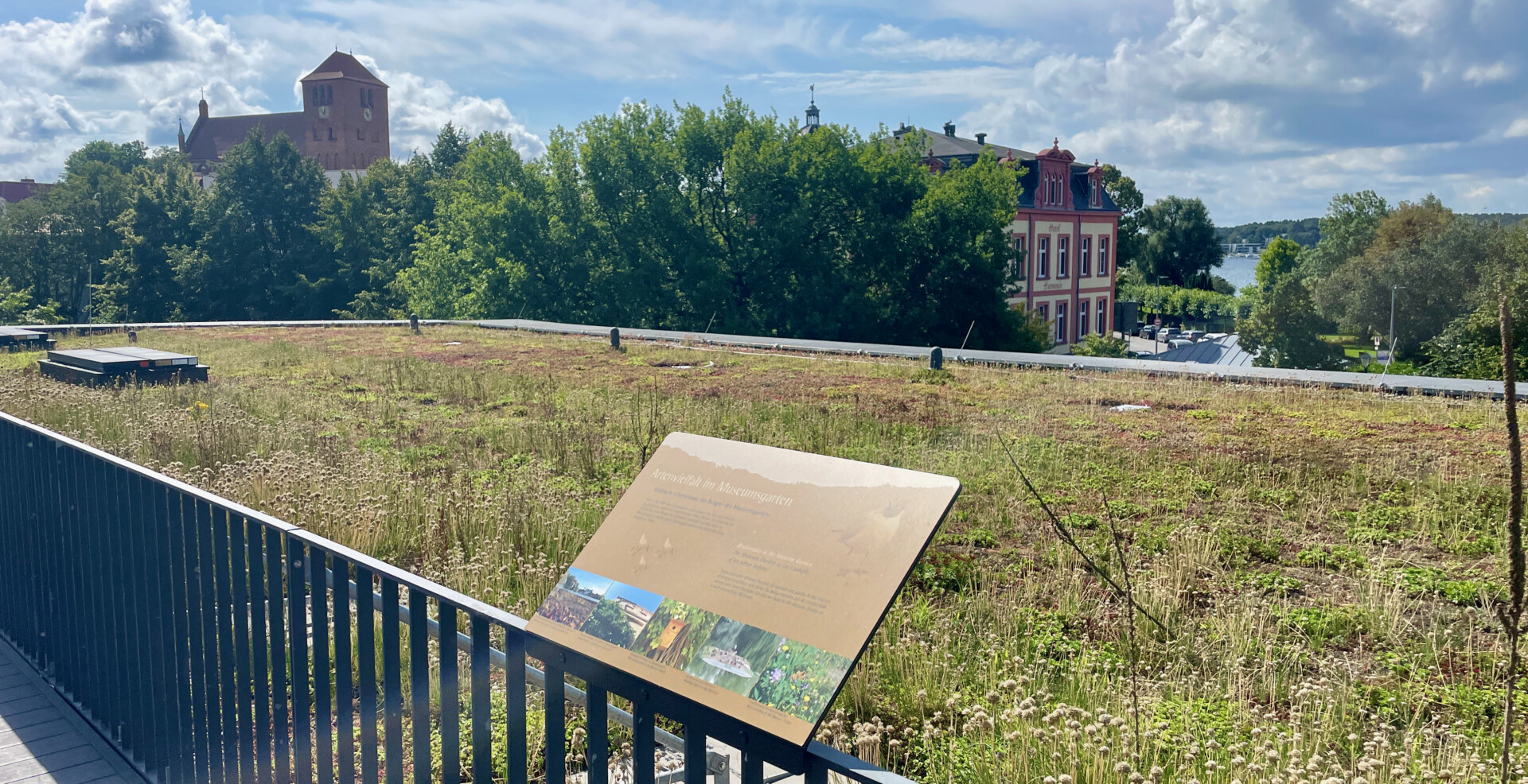 Warme Sonnenstrahlen kitzeln im Gesicht, viele geschäftige Insekten summen und surren um einen herum und weite farbenfrohe Blütenmeere lassen den Blick schweifen. Jeder kennt wohl diese Erinnerungen an einen wunderschönen Sommertag im Grünen. Doch wie sieht es mit Grünflächen im Stadtgebiet aus – findet man auch im hier kleine Oasen, die vor allem auch einen Rückzugsort sowie Lebensraum für die heimischen Pflanzen und Tiere bieten? Auf dem Dach des Müritzeums will man das jetzt herausfinden.