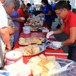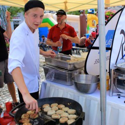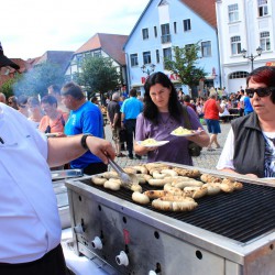 Rund 1000 Portionen hatte das Team vom Radisson Blu aus Göhren-Lebbin im Kühlgepäck. Da gab es verschiedene Salate, Bratwurst und Steak und auch Fischfrikadellen, die von den Müritzfischern beigesteuert wurden. Die Röbeler Bäckerei Gryphan lockte mit Brezel und Brötchen, am Kuchenstand gab’s jede Menge selbst gebackene Leckereien, und auch Dieter Fabisch aus Kambs war mit seiner Eintopfkanone bereits zum zehnten Mal mit von der Partie.