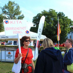 So engagiert wie die Läufer selbst, so phantasievoll auch die Namen der Teams. Da rennen die Röwelchen Gören und Öllern, da macht sich die Wutbande auf den Weg, da kommen die ExelEnten ins Schwitzen, da steigen die grünen Socken in die Sportschuhe, da hoffen die Glückskäfer auf den Sieg, da „hüpfen“ die Häschen ins Ziel, da flitzen die Luftikusse, da gibt das Mumteam alles und da stoßen die schnellen Tomaten auf Käthes Flitzer Eltern sowie die Volleybären. Auch ja, und dann gibt’s da ein Team mit dem etwas längeren Namen „WO GEht’s nach Waren?