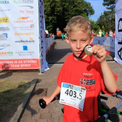 meinte ein Teilnehmer eine halbe Stunde vor dem ersten Start etwas skeptisch. Doch das ALD-Team als Veranstalter, das von den Cheerleadern aus Perleberg und dem MSV Groß Plasten bei der Organisation unterstützt wurde, hatte alles bestens im Griff und so flitzen kurz nach 9 Uhr zunächst die kleinen Sportler im Alter von drei bis sechs Jahren los. Und wie sie flitzten. Zur Belohnung gab’s für alle eine Medaille. Es folgte die etwas größeren Kindern und da wurden dann sowohl die Teilnehmer als auch die Zuschauer überrascht. Lasse aus Waren, der das Rennen im vergangenen Jahr im Rollstuhl verfolgt hat und der Dank des RUN FOR CHARITY jetzt mit einem behindertengerecht ausgestatteten Auto unterwegs sein kann, absolvierte dieses Mal selbst eine kleine Strecke mit einer Gehhilfe. „Er wollte unbedingt dabei sein und so auch Danke sagen“, berichtete seine Mama. Natürlich gab’s für Lasse einen Riesen-Applaus und der eine oder andere ansonsten hartgesottene Sportler brauchte schnell mal ein Taschentuch….