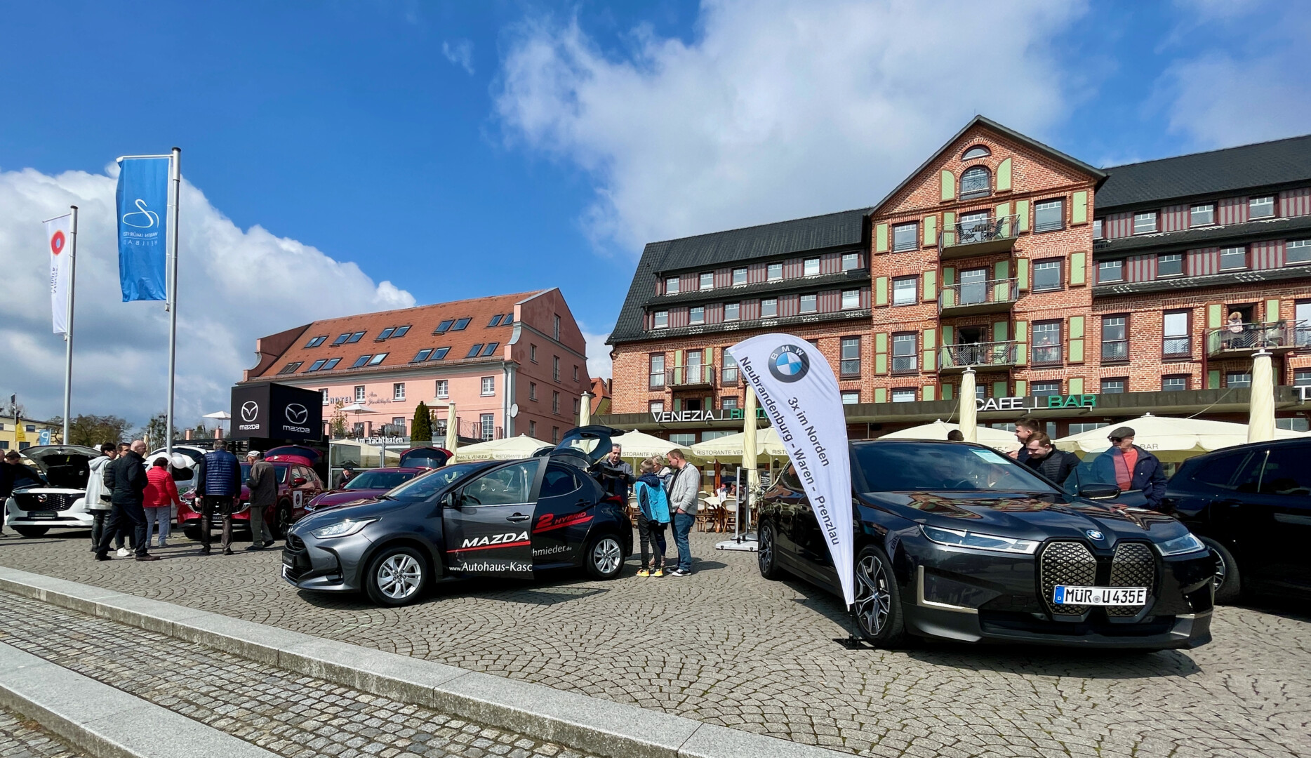 Spontan losfahren möchten auch die Gerhard und Kathrin Brendecke. Sie sind im Urlaub an der Müritz und zeigten sich begeistert von der Messe am schönen Warener Hafen. „Ein tolle Veranstaltung mit schönen Autos und einem unterhaltsamen Programm. So etwas haben wir bei uns noch nicht erlebt. Mein Mann hat für Dienstag sogar einen Termin mit einem Autohändler gemacht, nach dem er eine halbe Stunde lang hervorragend beraten wurde. Und das in dieser Atmosphäre – einfach klasse“, schwärmt Kathrin Brendecke, die in Nordrhein-Westfalen zu Hause ist und derzeit ihren Urlaub in Göhren-Lebbin verbringt. Und während ihr Mann sich einen Mittelklassewagen in allen Einzelheiten zeigen ließ, machte sich die Urlauberin bei den Fahrrädern schlau. Schließlich liebäugelt sie schon länger mit einem E-Bike, fand bisher aber noch nicht die Zeit, sich ausführlich damit beschäftigen. „Ich wusste gar nicht, dass E-Fahrräder so modern aussehen können“, sagte sie und verrät, dass so ein Gefährt demnächst auf der Einkaufsliste stehen soll.
